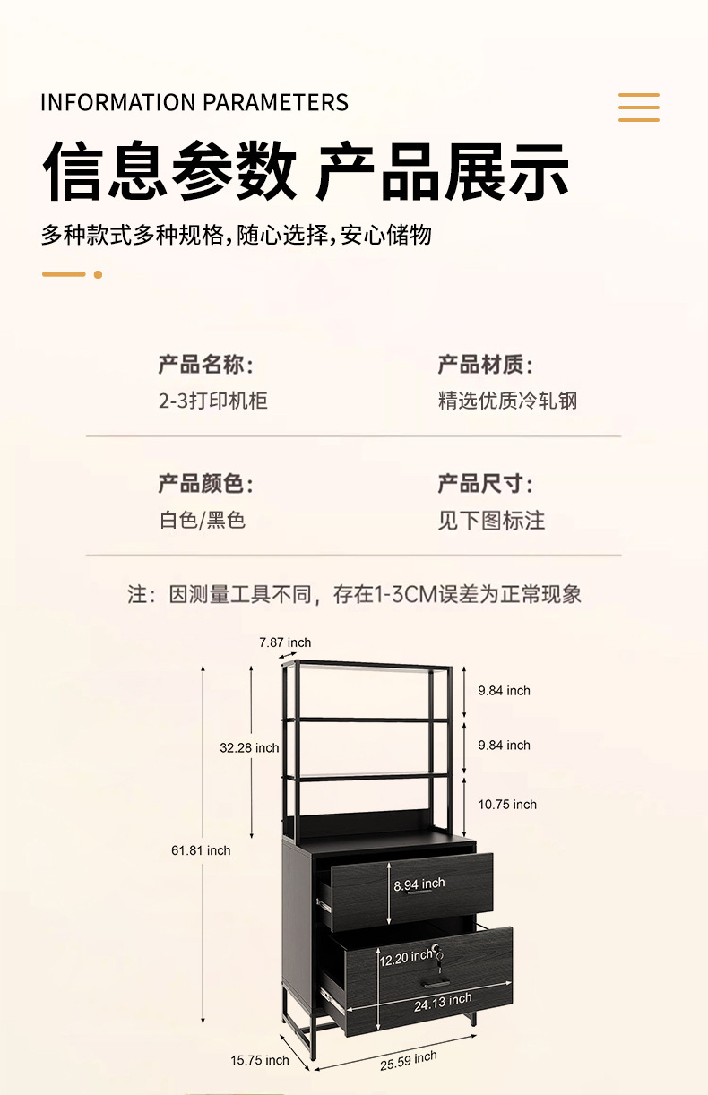 2-3打印机柜 25.59*7.87*61.81 ¥38304 999个可售