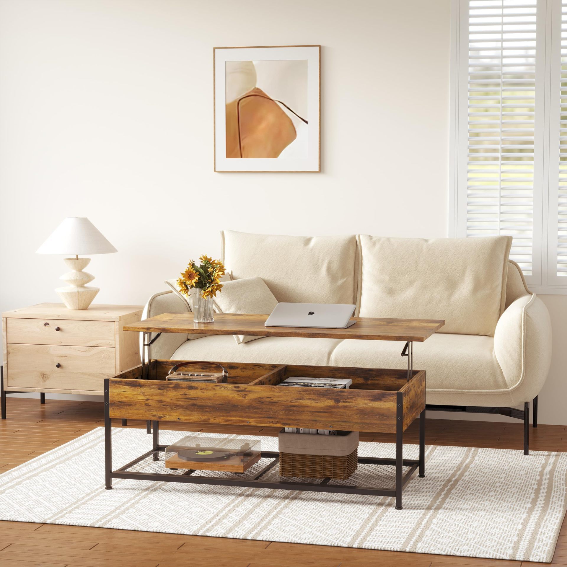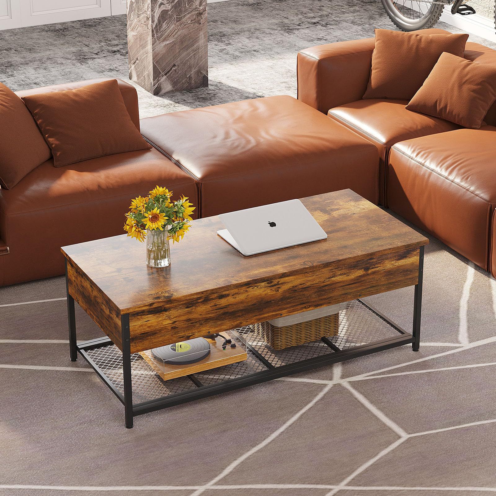 外贸DZ美式复古茶几客厅简约铁艺茶台现代小户型轻奢升降茶几桌子 投诉
