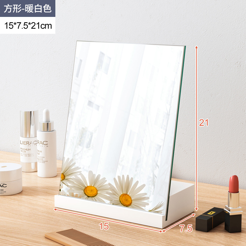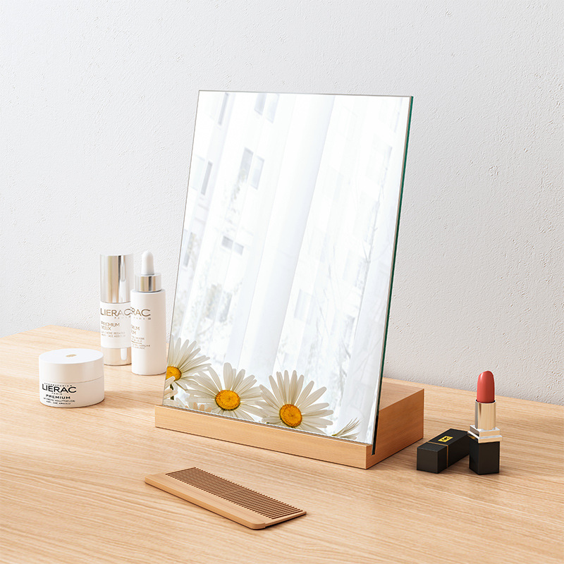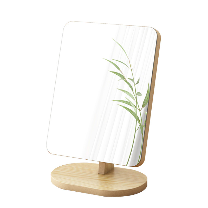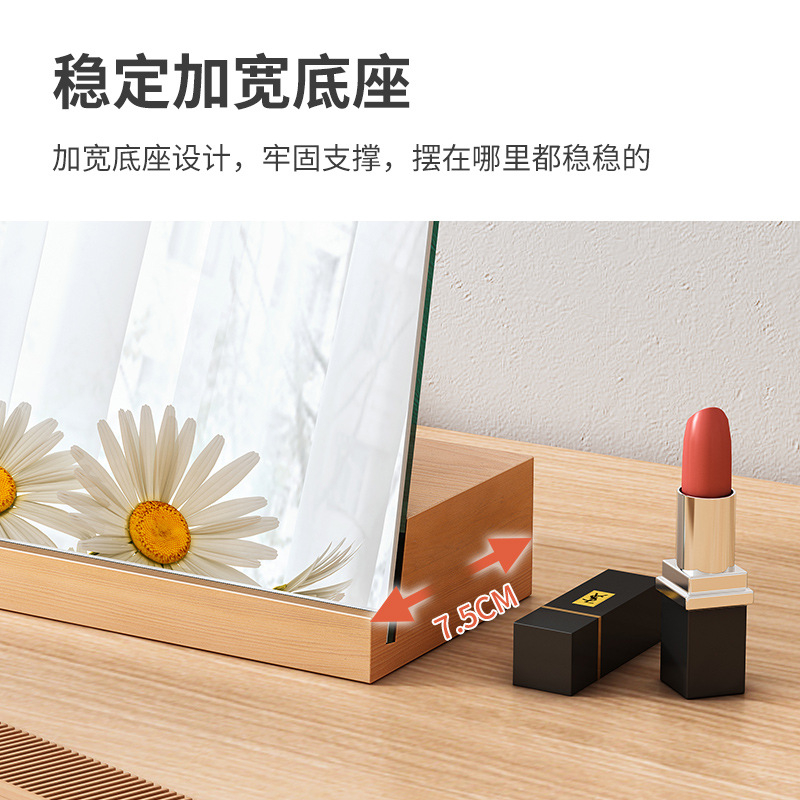 桌面镜子化妆镜大号实木梳妆镜台式家用小型办公室便携折叠镜子
