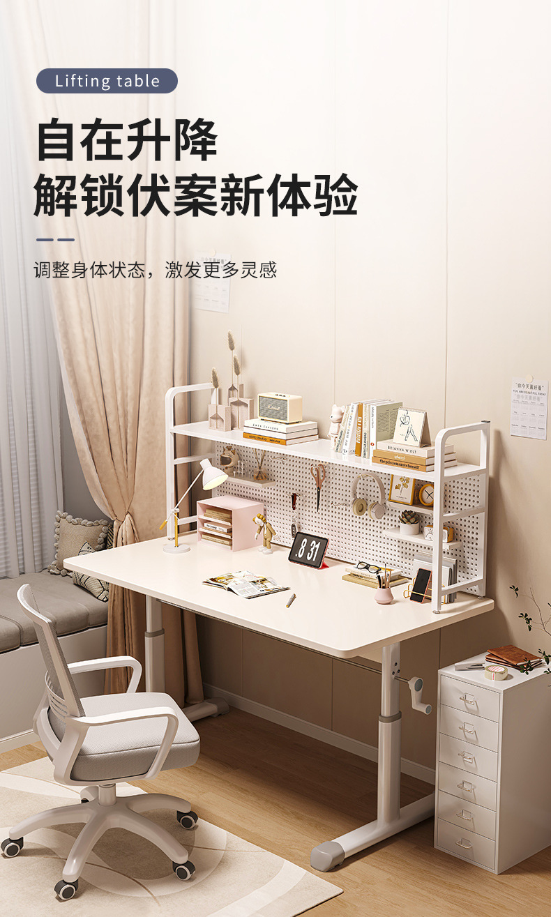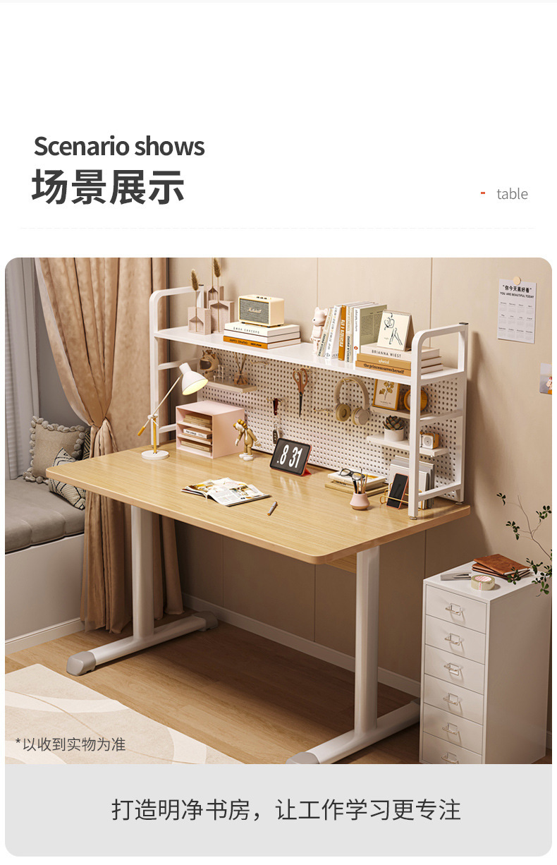 书桌书架一体桌子学生家用学习写字简易可升降工作台式电脑桌置物