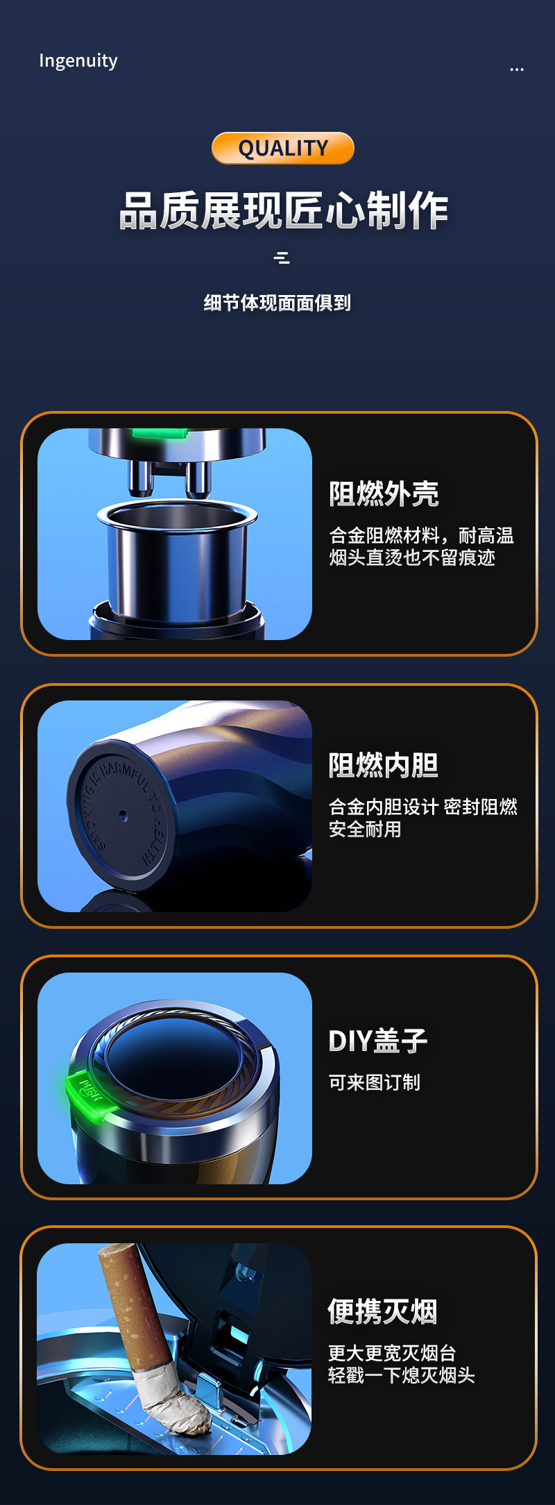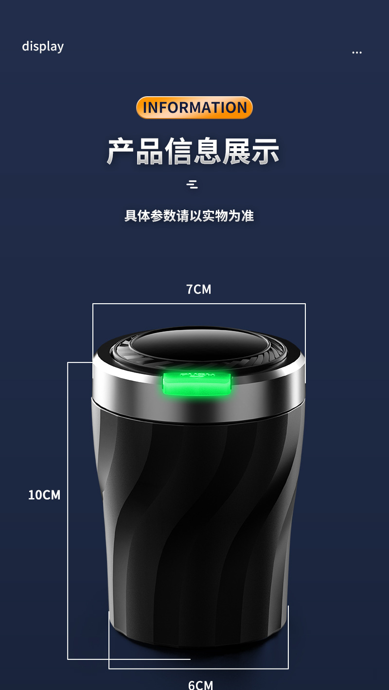 车载烟灰一键开盖夜光多功能汽车室内通用金属内胆烟灰缸设计带盖 投诉