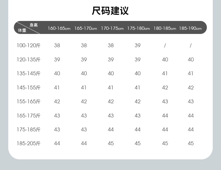 | 43码【170斤-180斤】 | ¥0 | 50件可售 |