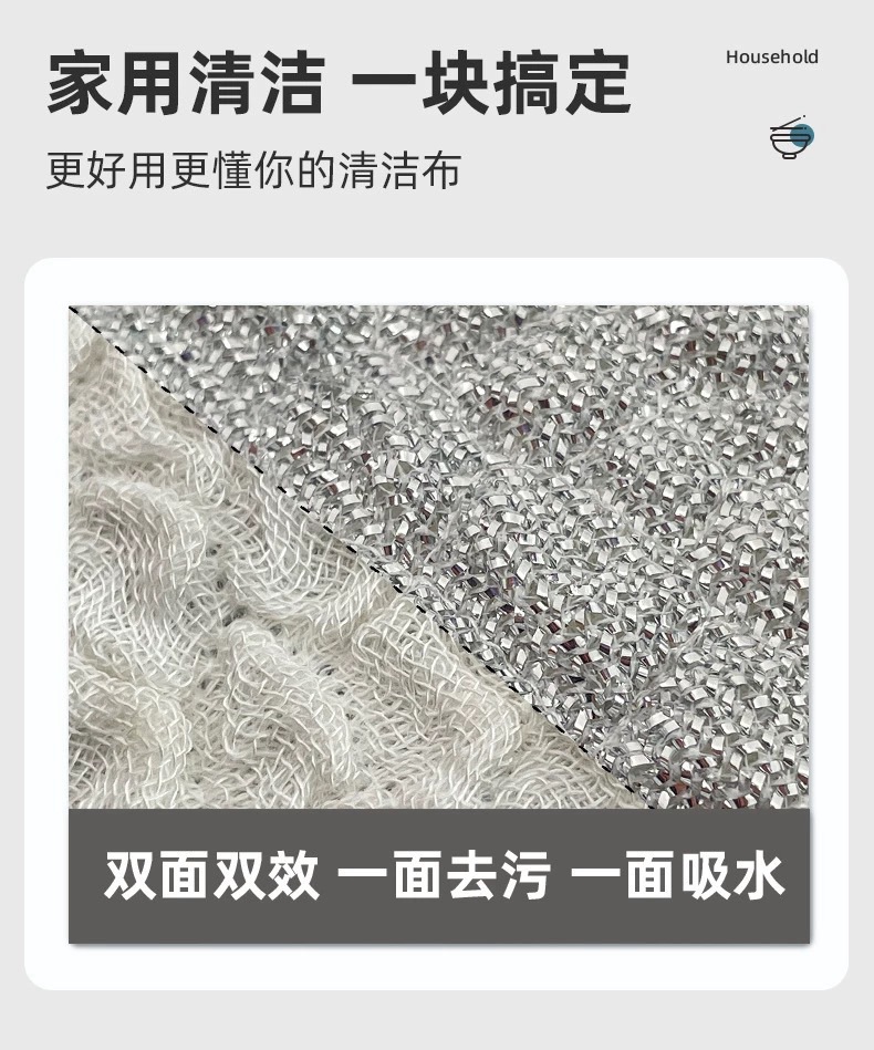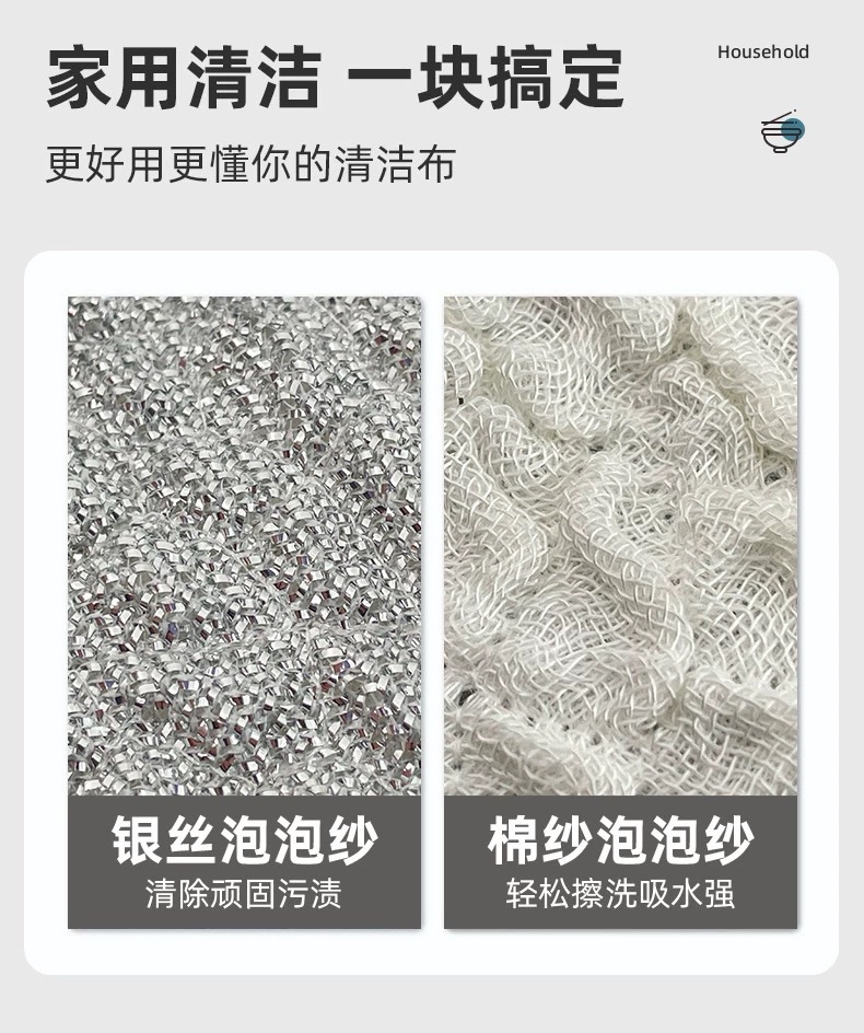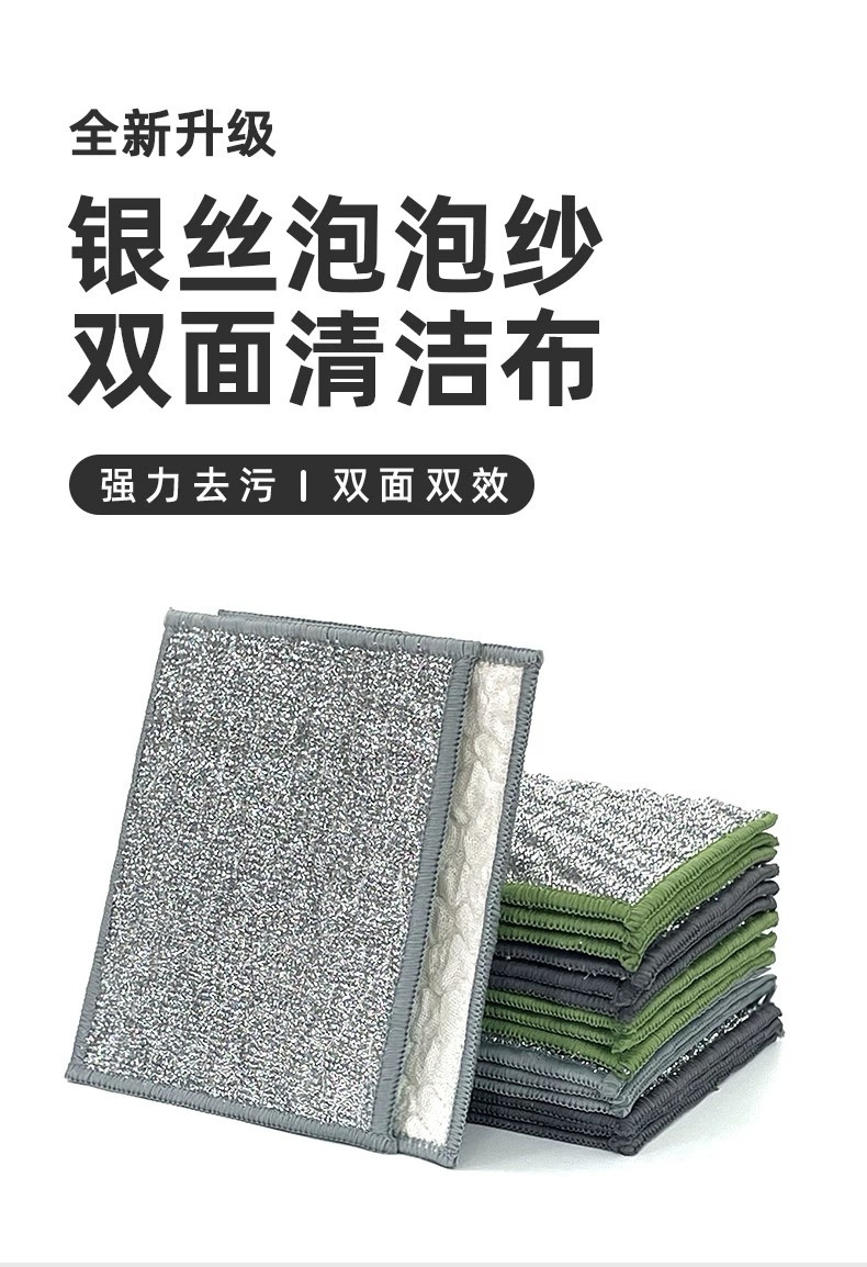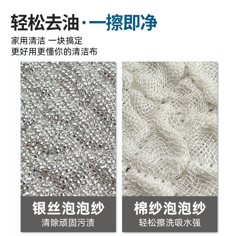加厚钢丝泡泡抹布洗碗布银丝棉纱洗碗巾抹布双层不易沾油刷锅神器 English | 投诉