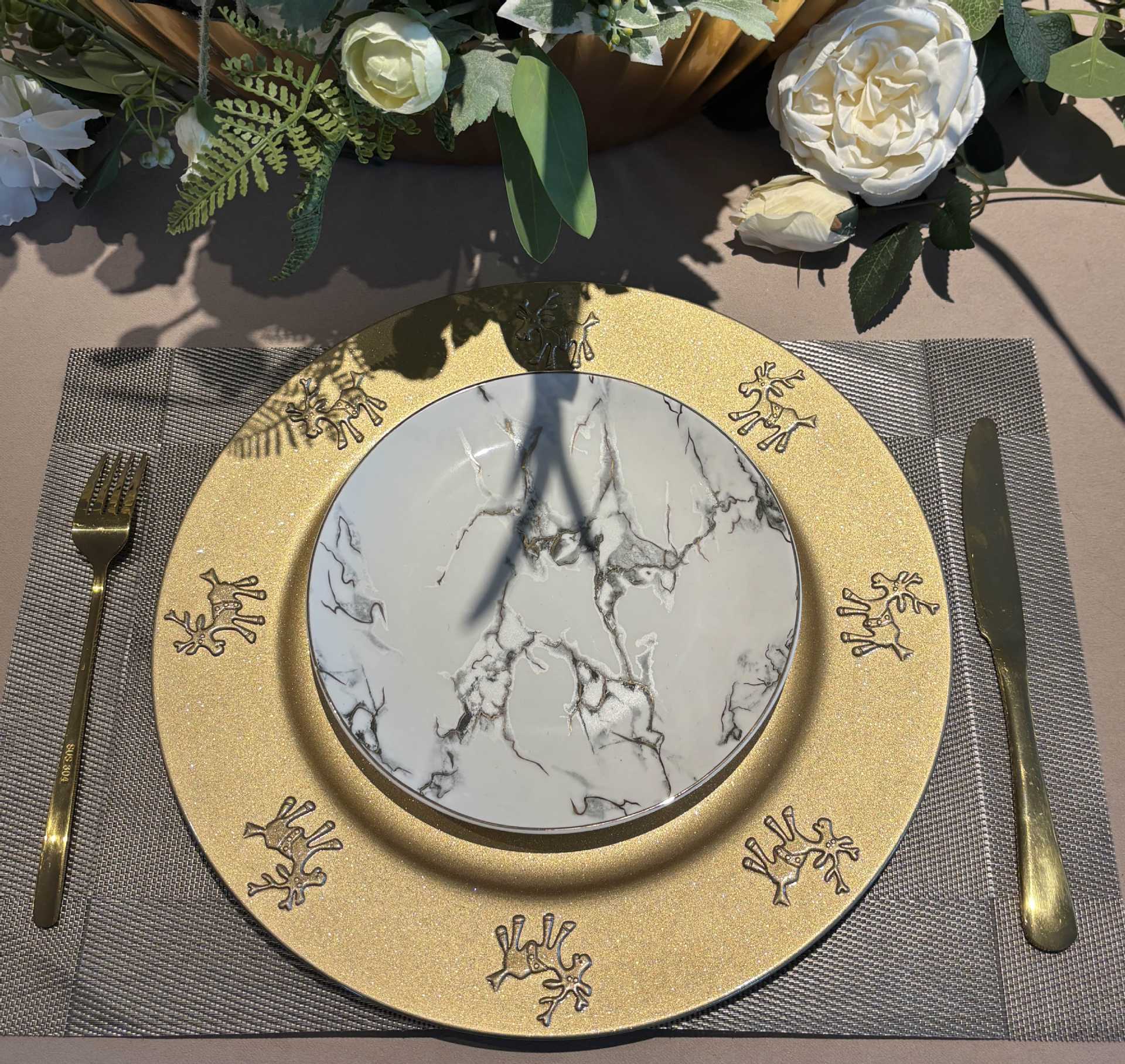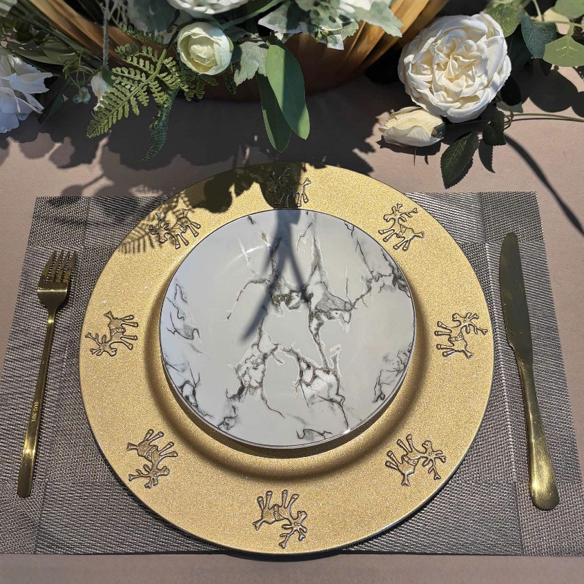 跨境charger plates欧式婚礼派对酒店晚宴盘边缘盘垫盘PP塑料圆形