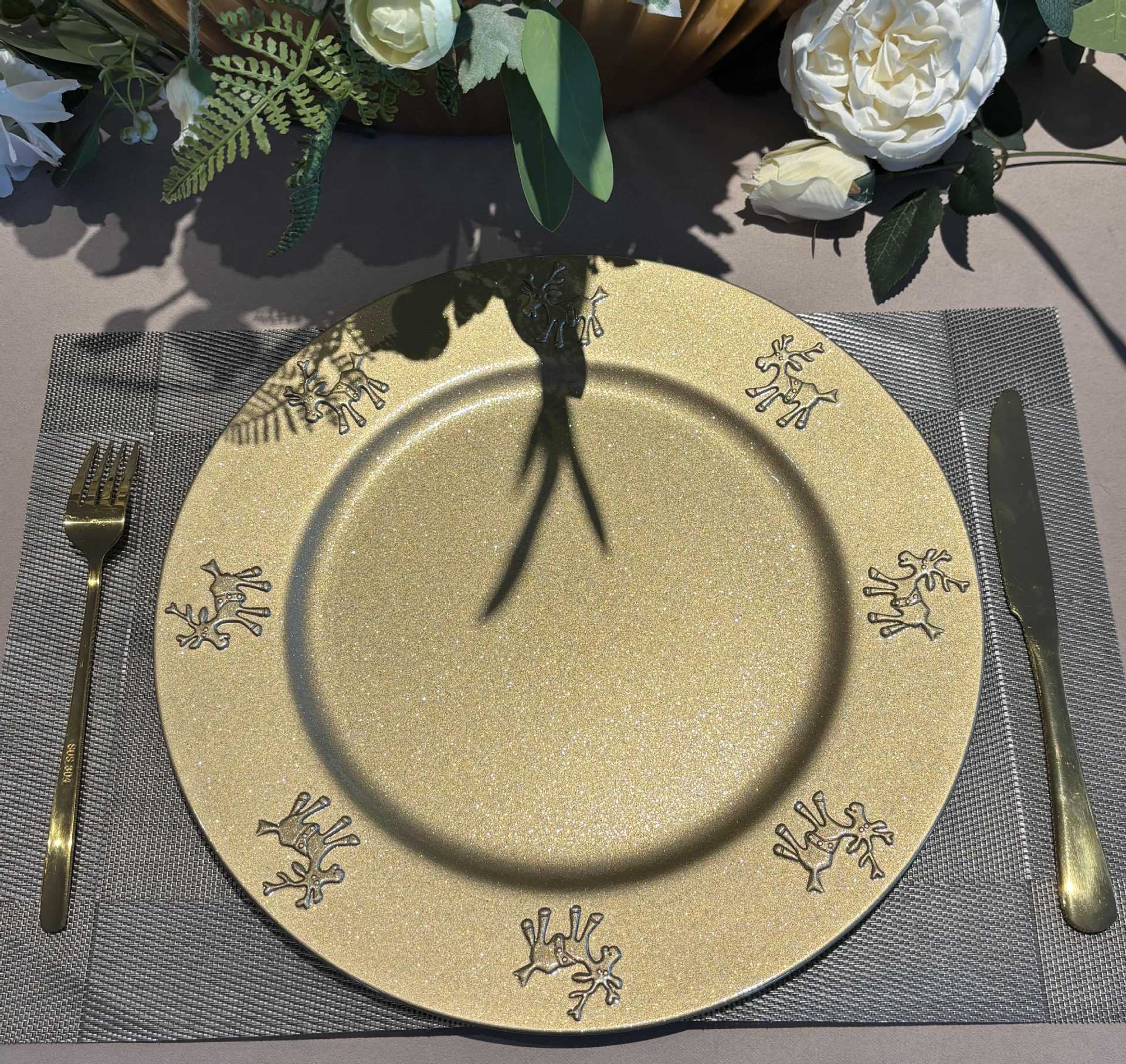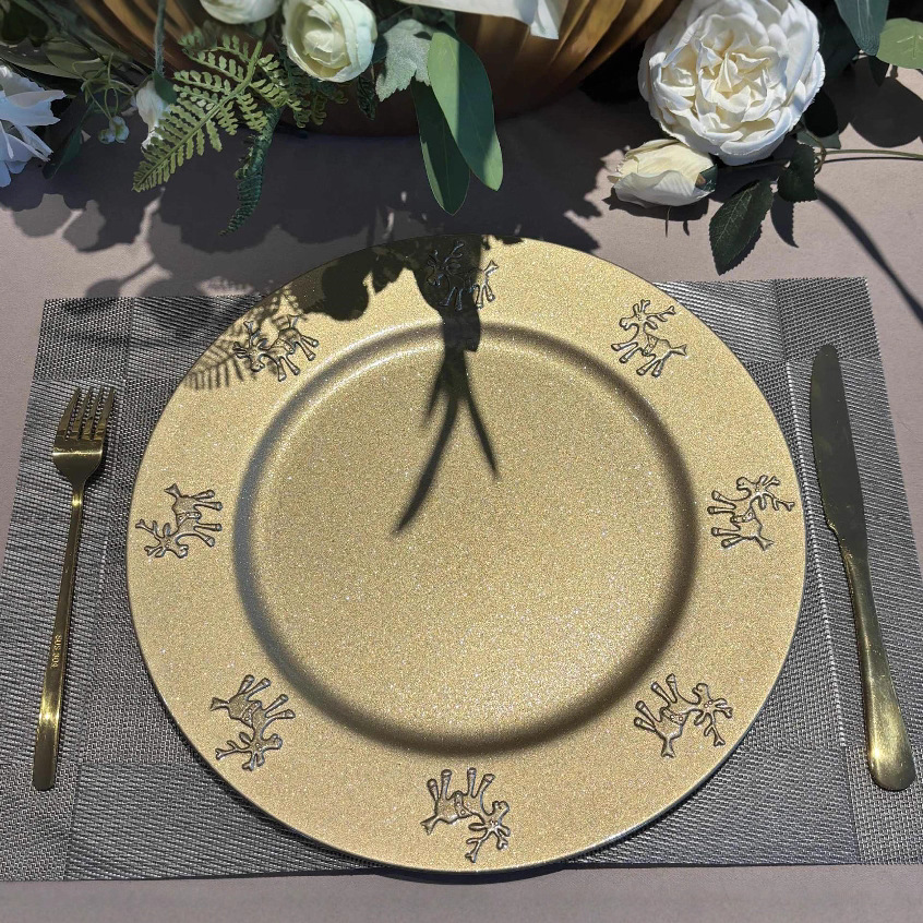 跨境charger plates欧式婚礼派对酒店晚宴盘边缘盘垫盘PP塑料圆形 English | 投诉