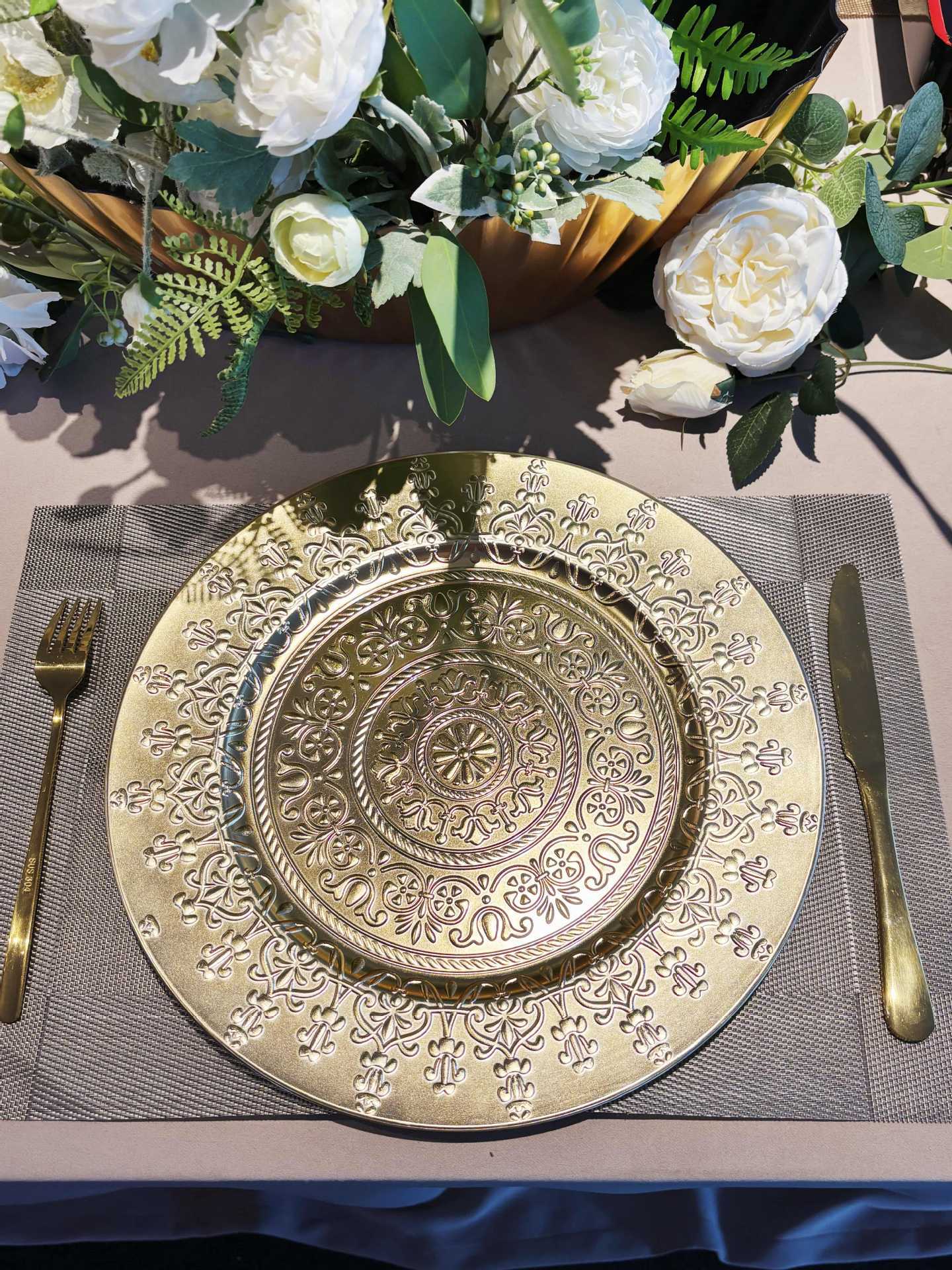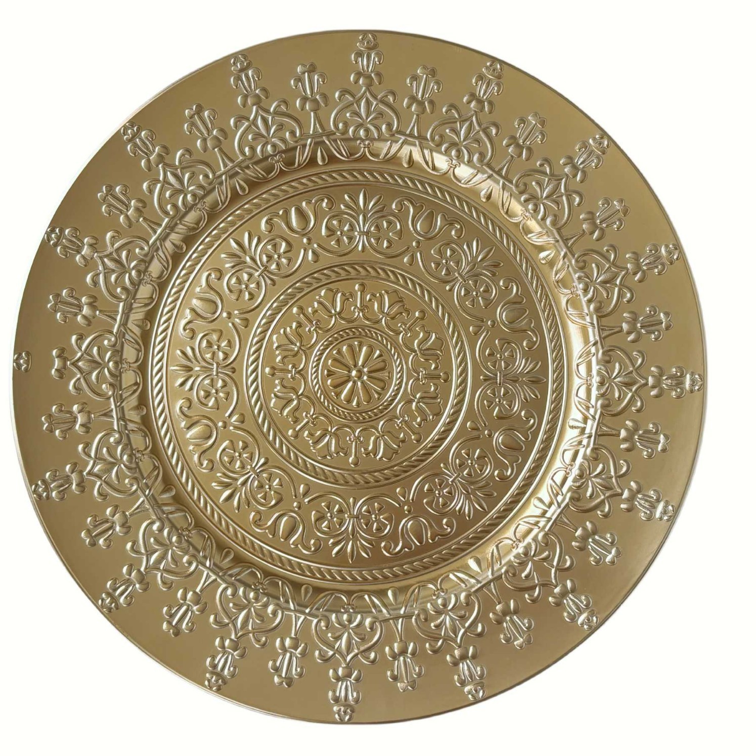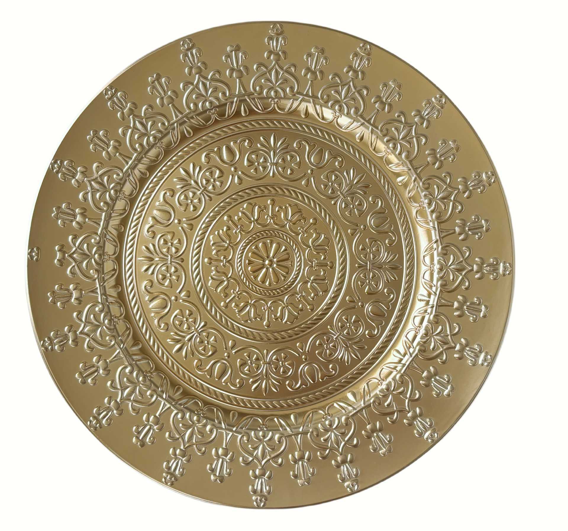 材质: 塑料 表面工艺: 电镀 产品质量等级: 合格品 品牌: 鑫泓泰工艺品 形状: 圆形 微波炉: 不可用 货号: 1 是否进口: 否 适用人群: 通用 图案: 花卉 风格: 西式 适用场景: 酒店,饭菜,喝咖啡,喝茶 加印LOGO: 可以 加工定制: 可以 产品上市时间: 2025.7.10 价格段: 5元以内 适用对象: 通用 是否有专利: 否 颜色: 金色 有可授权的自有品牌: 否 重量: 1.0 kg/片