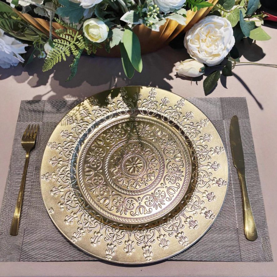 跨境charger plates欧式婚礼派对酒店晚宴盘盘垫盘PP塑料 English | 投诉