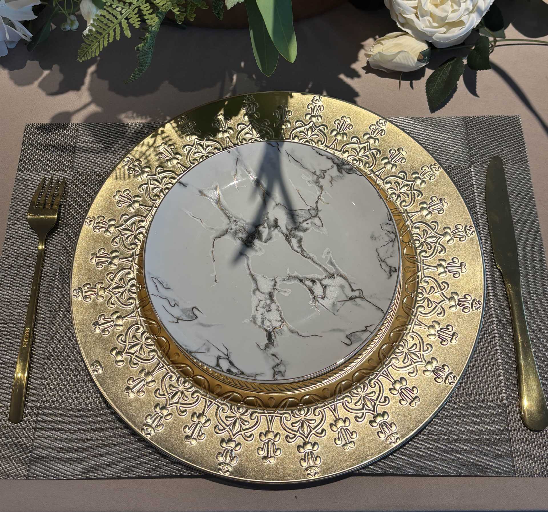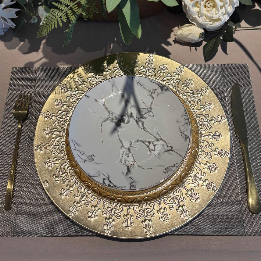 跨境charger plates欧式婚礼派对酒店晚宴盘盘垫盘PP塑料