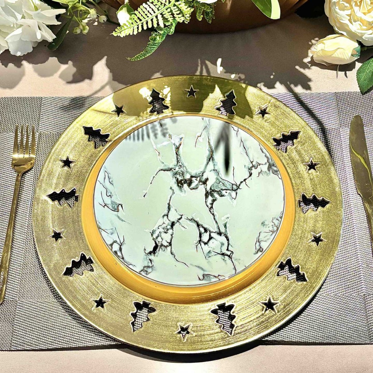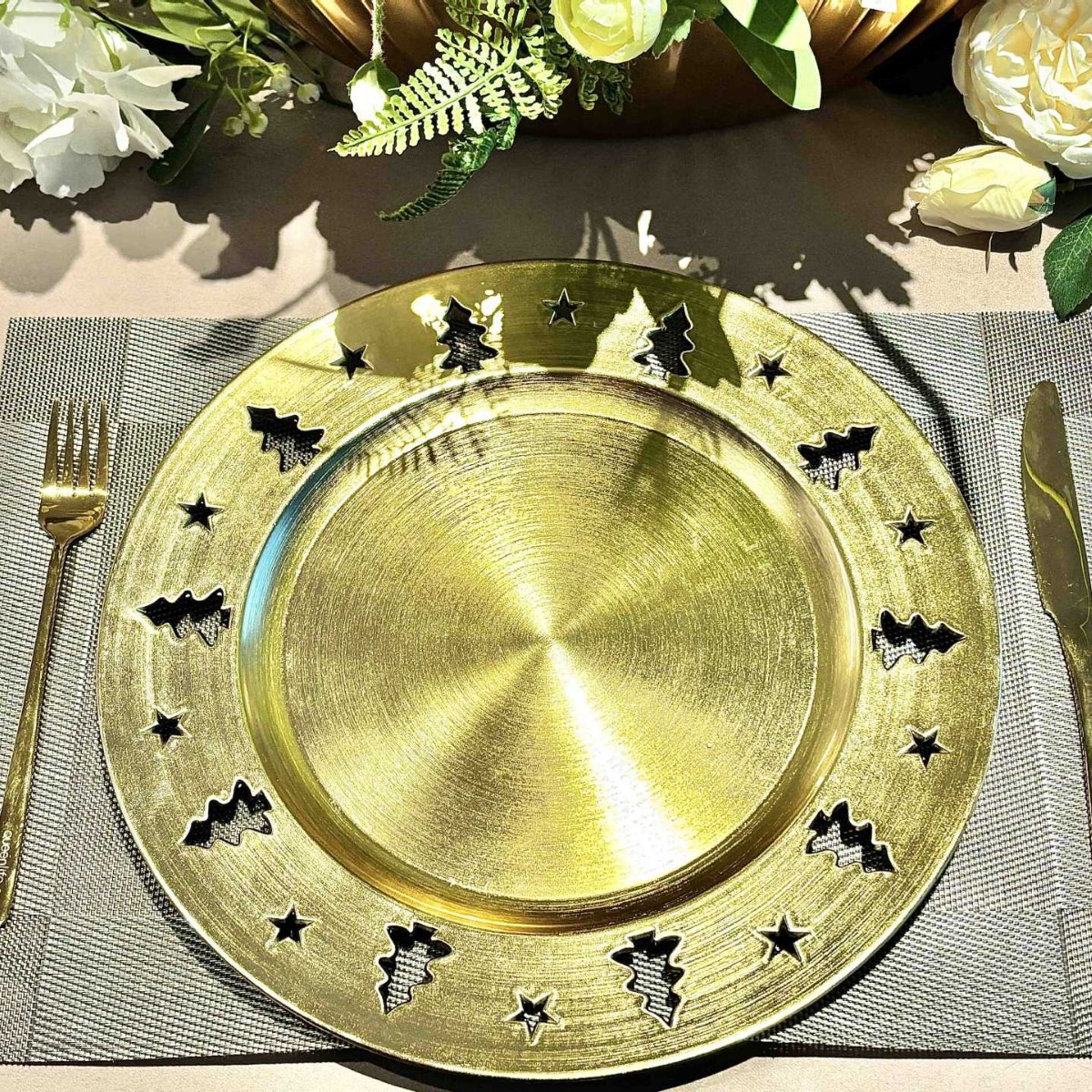 跨境charger plates欧式婚礼派对酒店晚宴圣诞星星盘垫盘PP塑料工