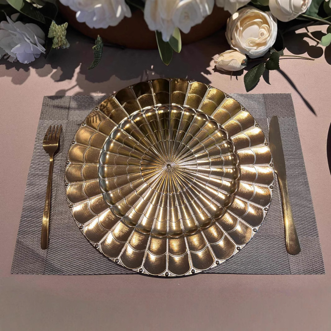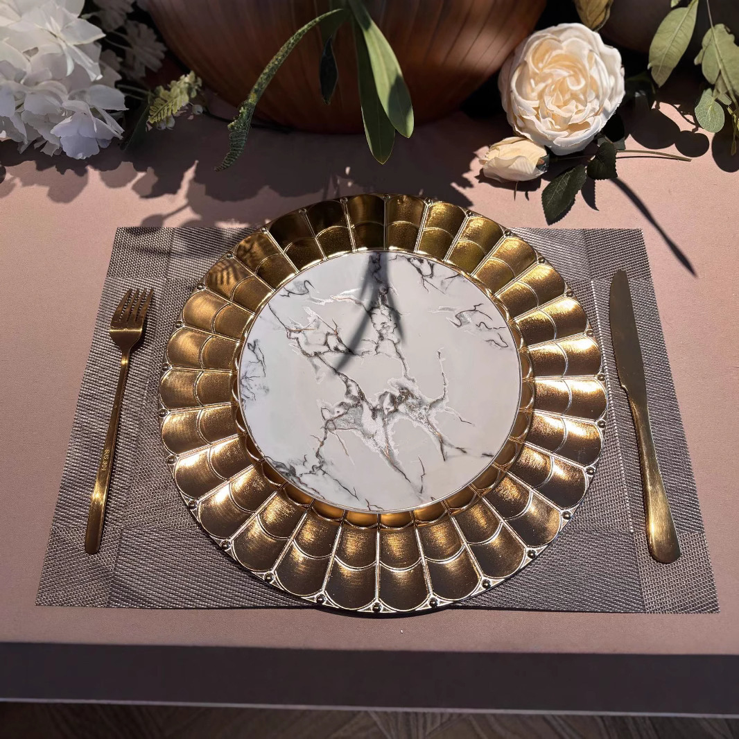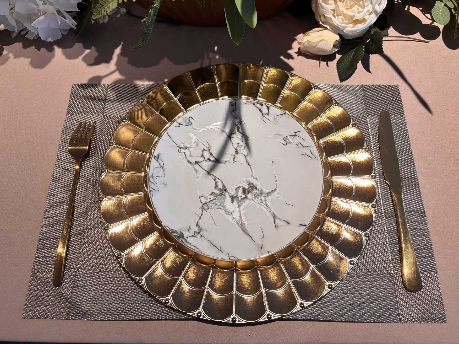 charger plates欧式婚礼派对酒店晚宴盘蛛网盘垫盘PP塑料托盘餐具 English | 投诉