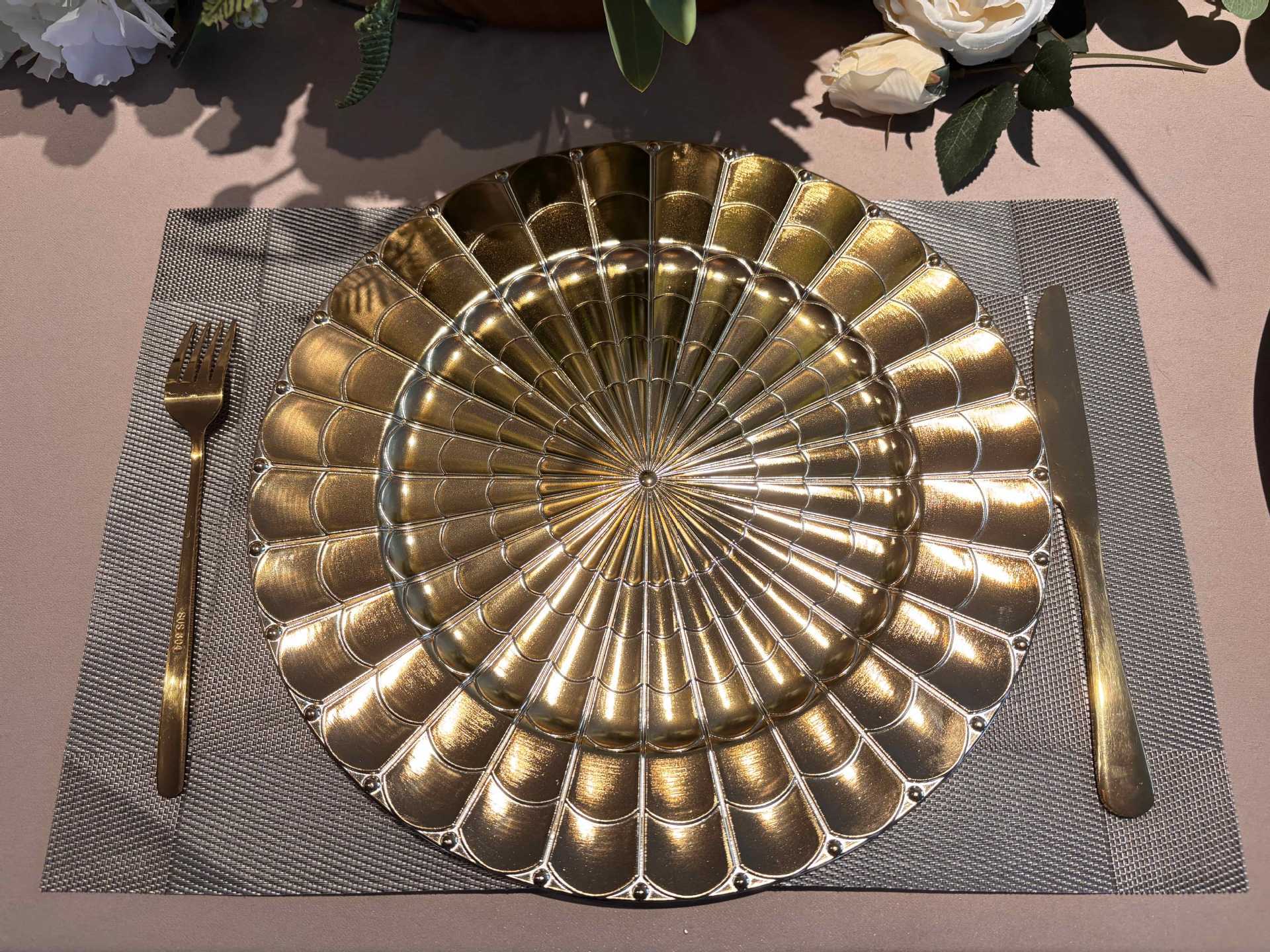 charger plates欧式婚礼派对酒店晚宴盘蛛网盘垫盘PP塑料托盘餐具