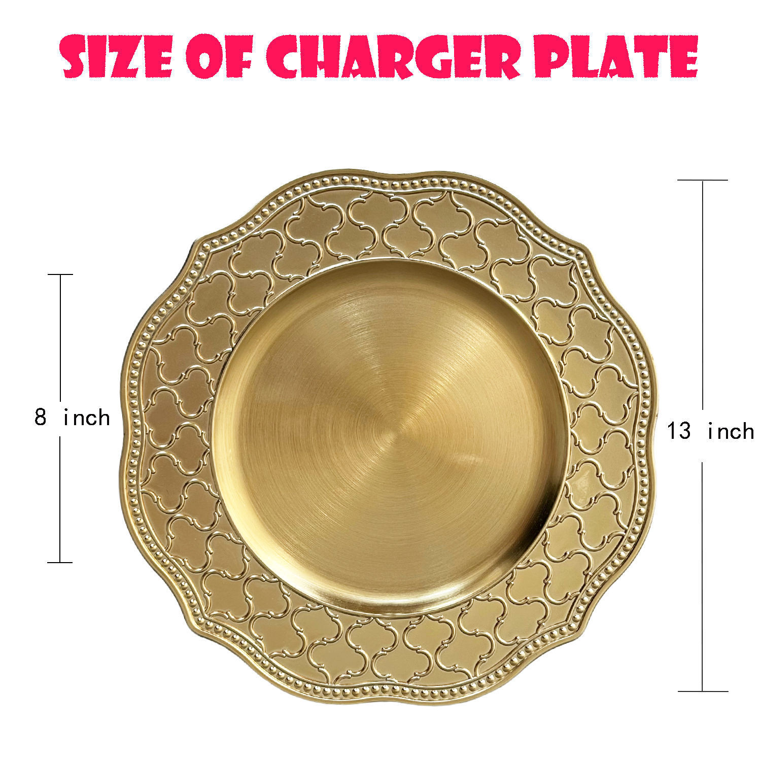 Charger plate工厂跨境外贸婚礼酒店金色塑料装饰盘西餐盘饰品 English | 投诉