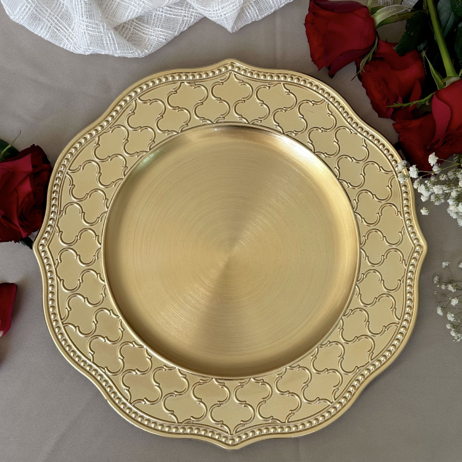 Charger plate工厂跨境外贸婚礼酒店金色塑料装饰盘西餐盘饰品