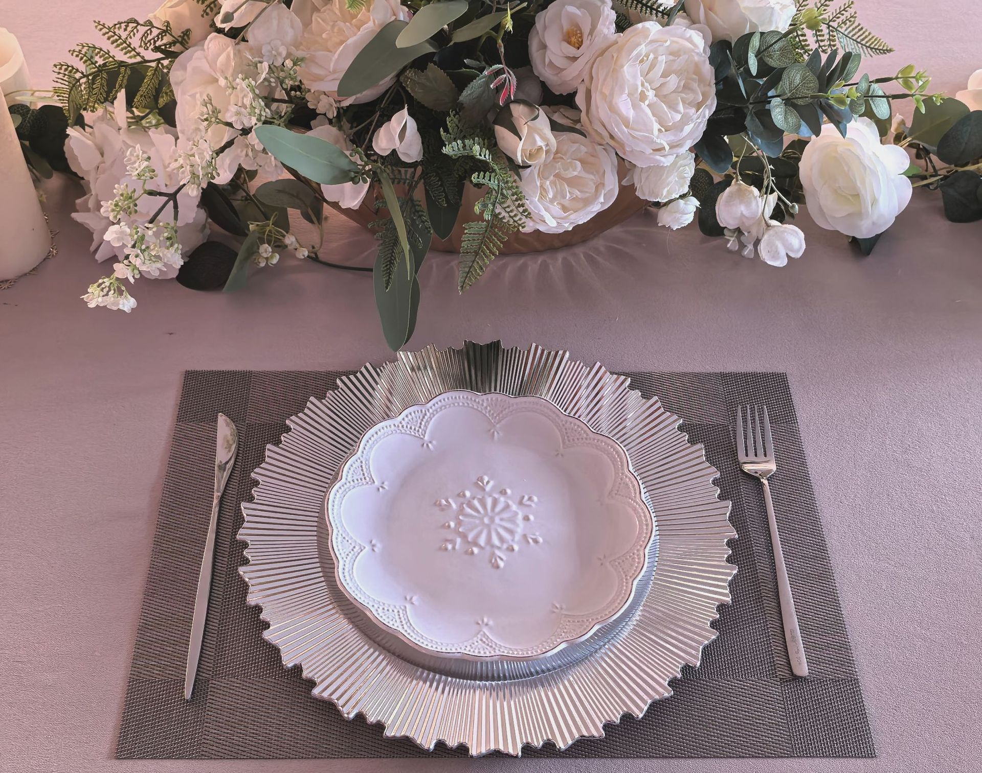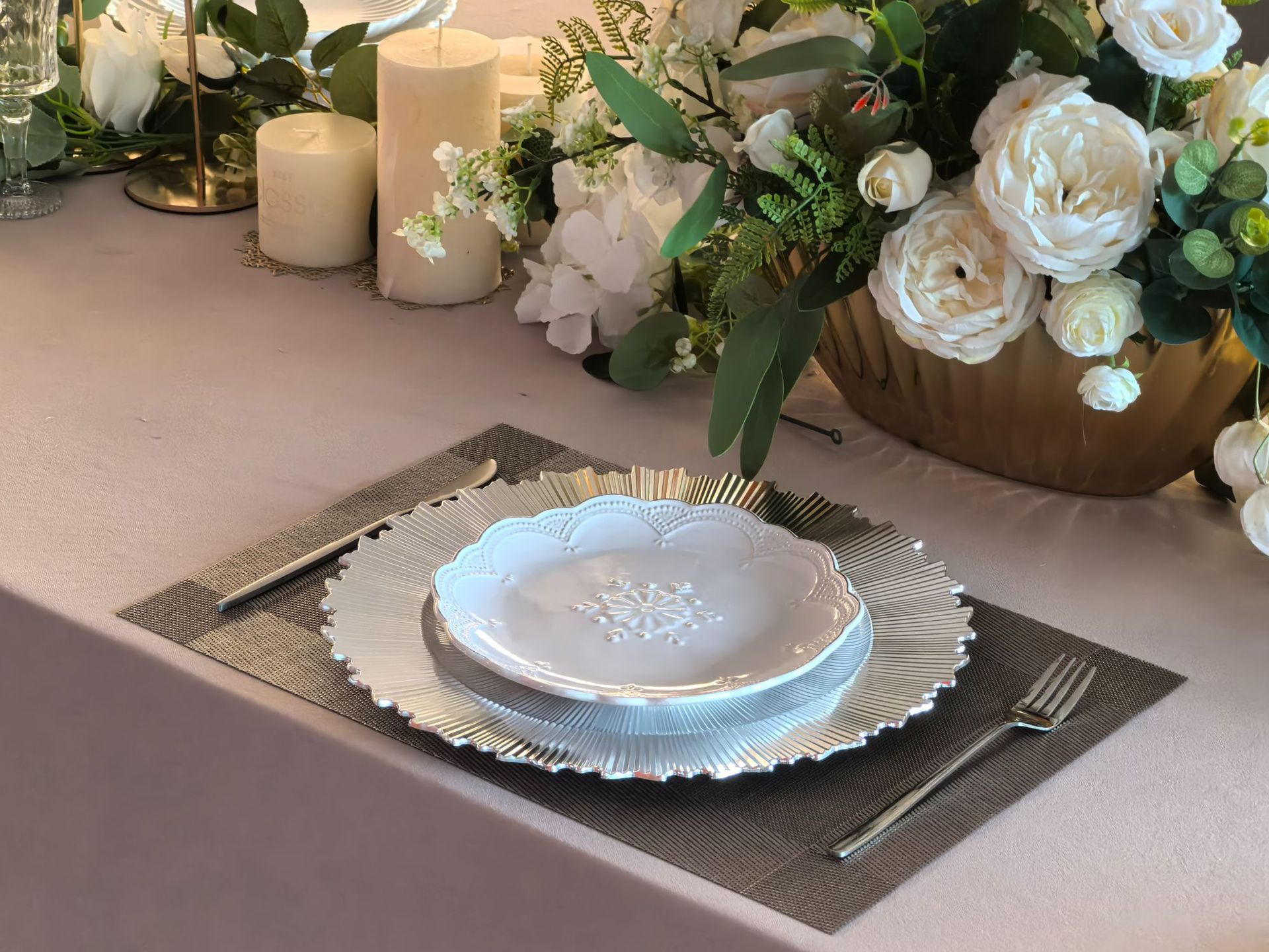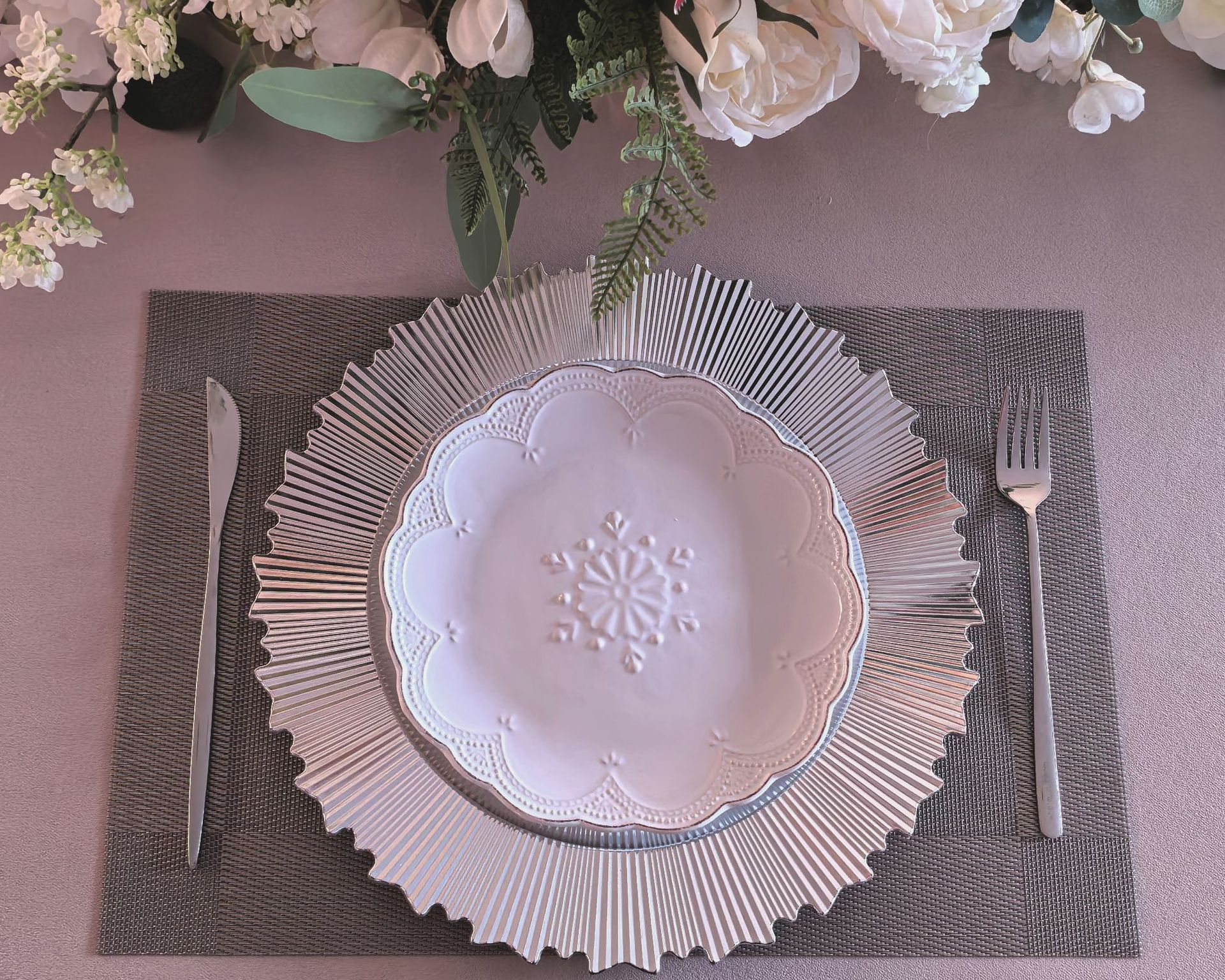 厂家外贸charger plates电镀PP塑料盘西餐厅酒店宴会餐盘