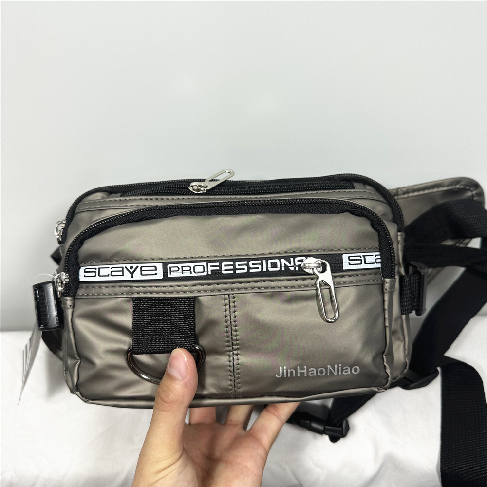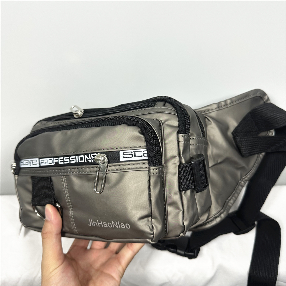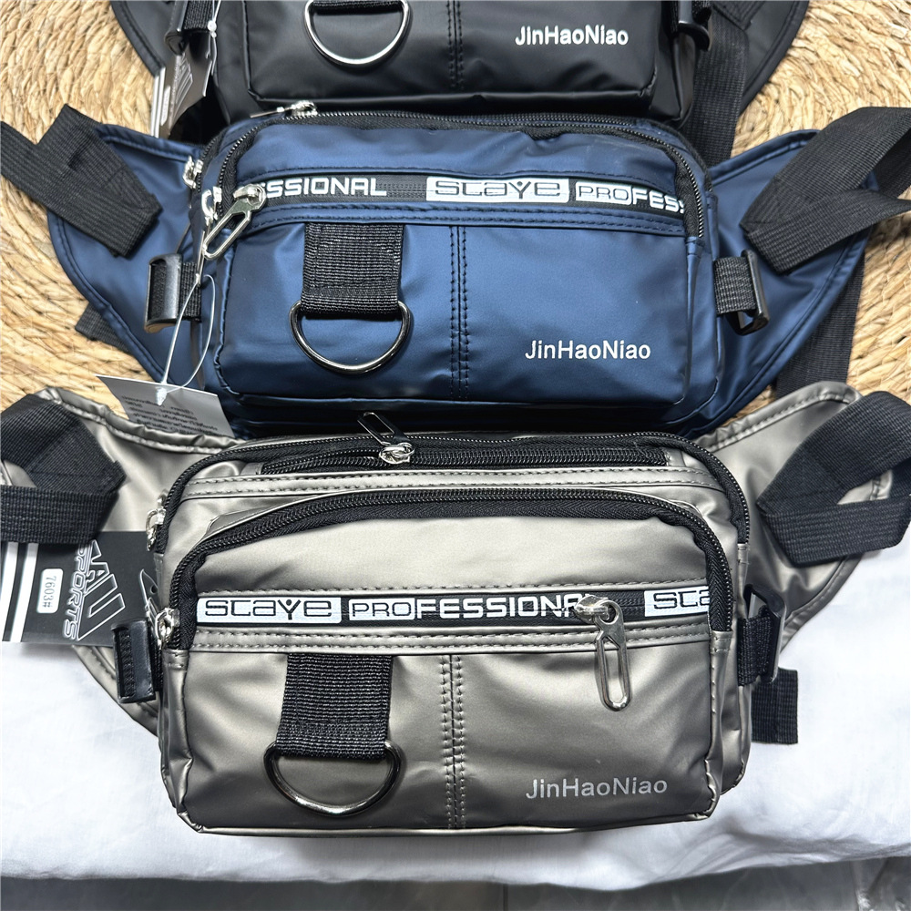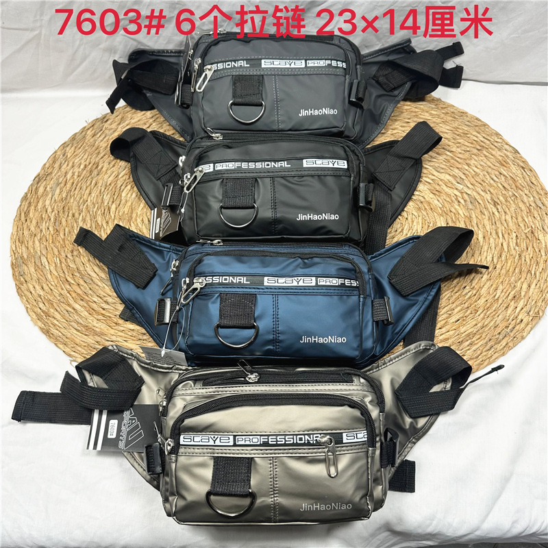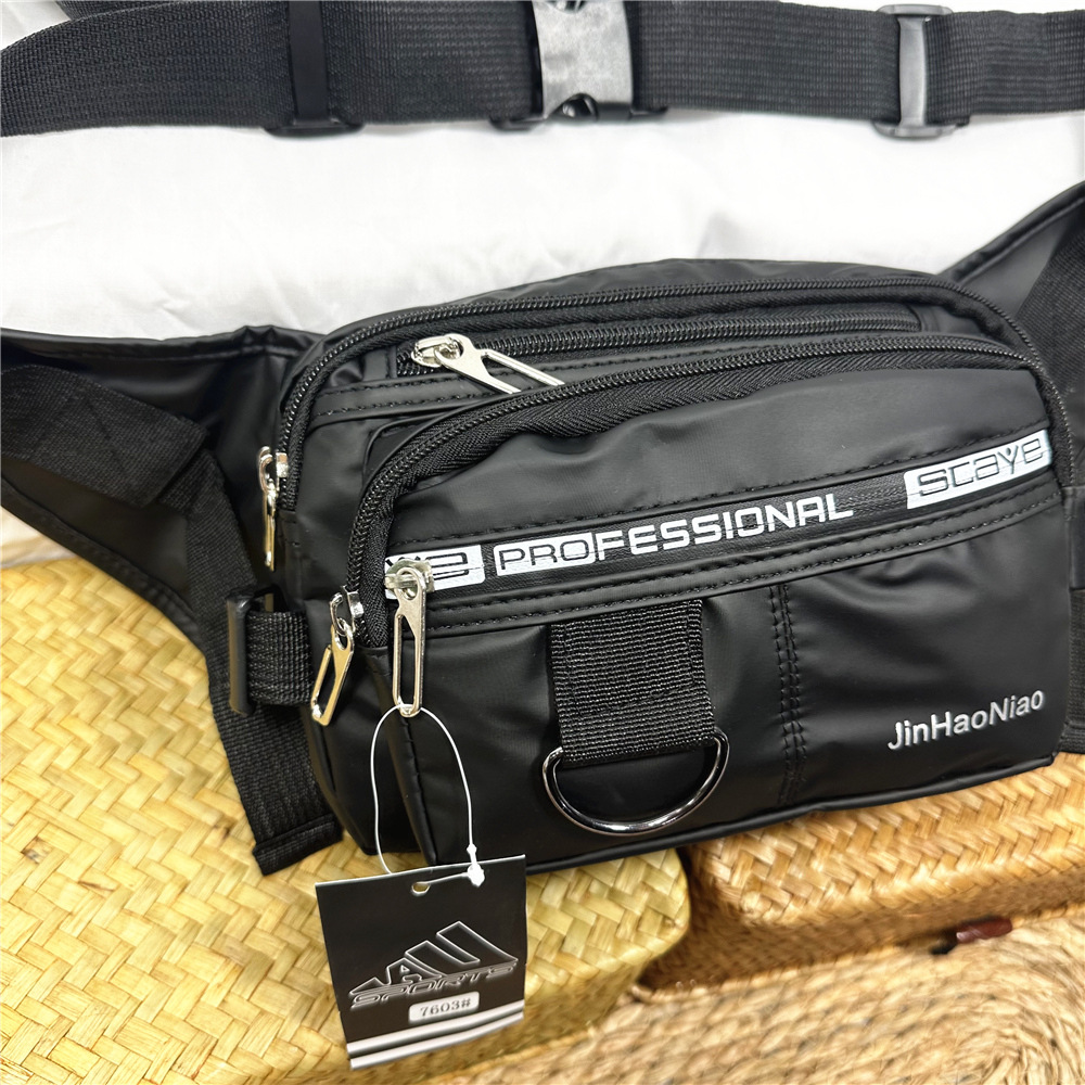 7603#腰包男士休闲包大容量户外潮流时尚挎包男牛津布包皮膜斜挎