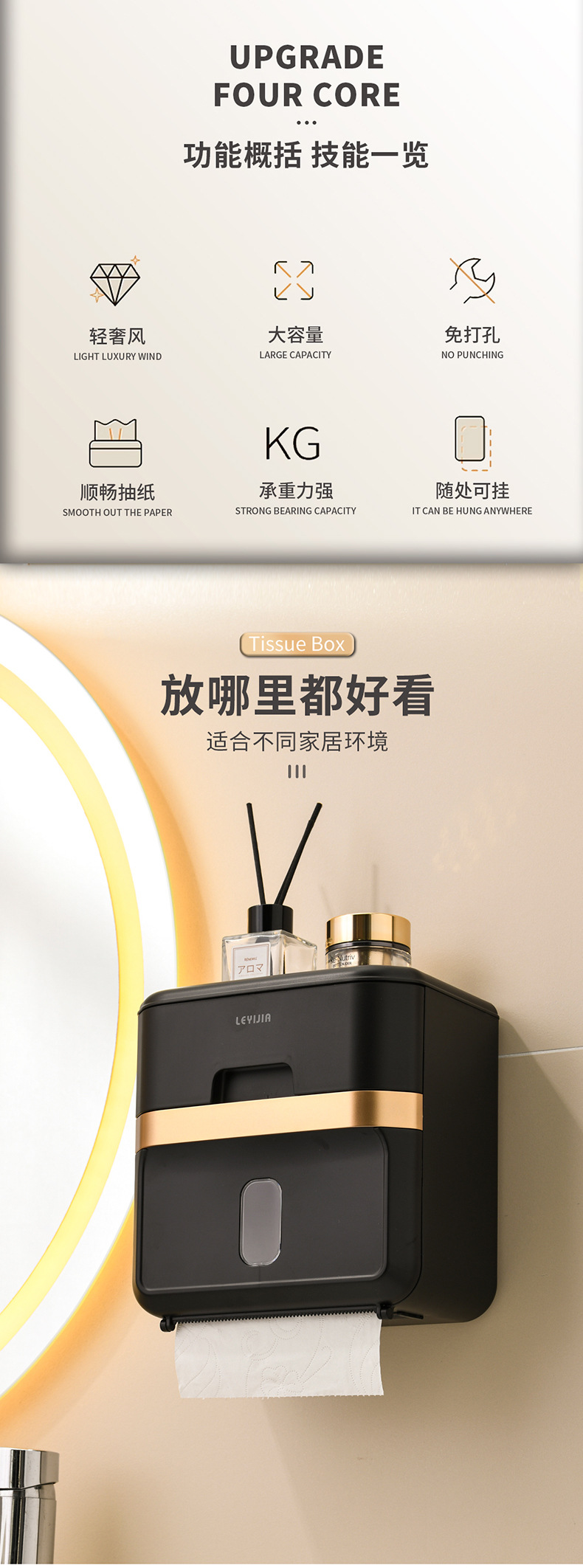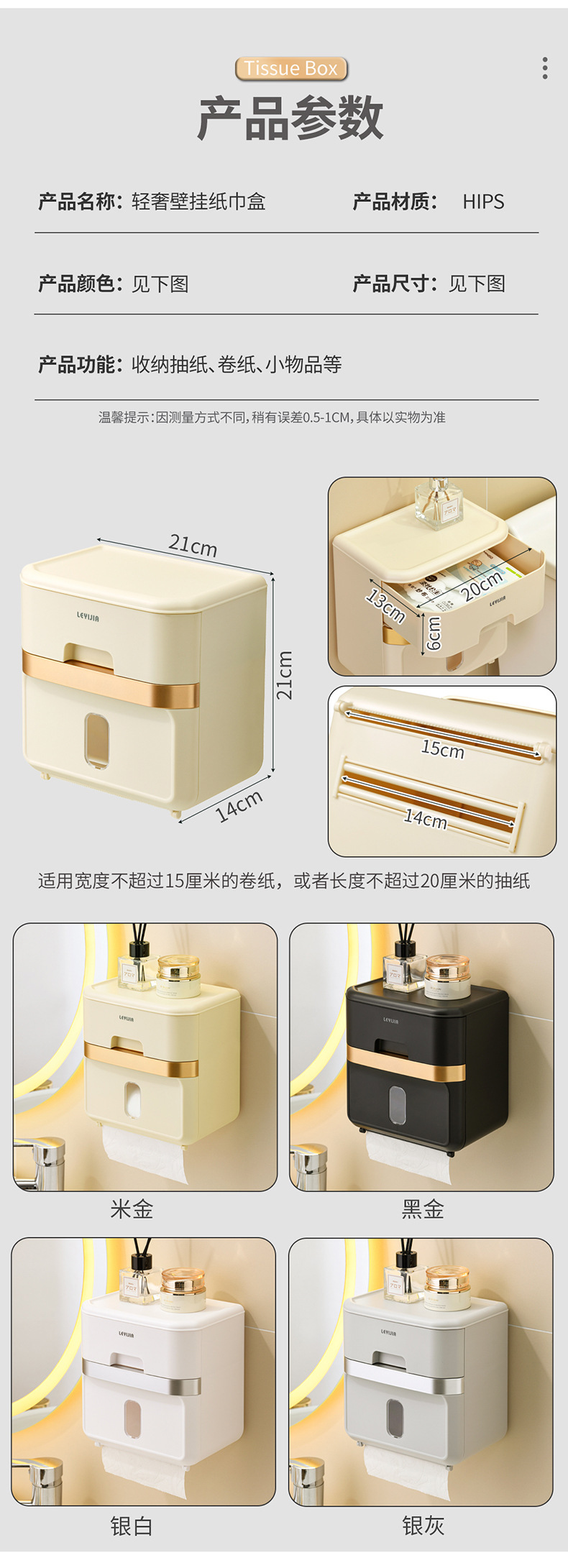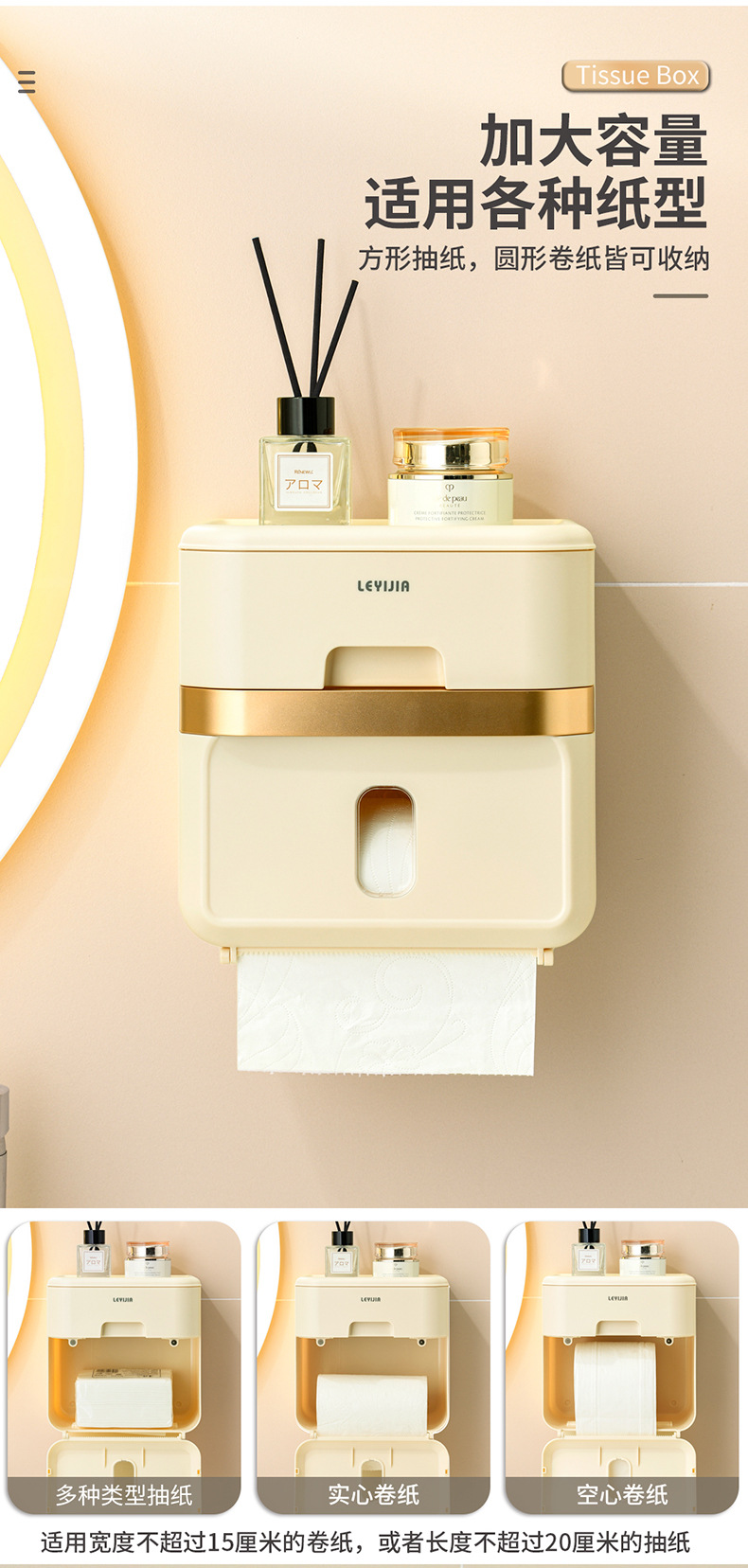 轻奢奶油风壁挂纸巾盒 货号:JW-8009 |