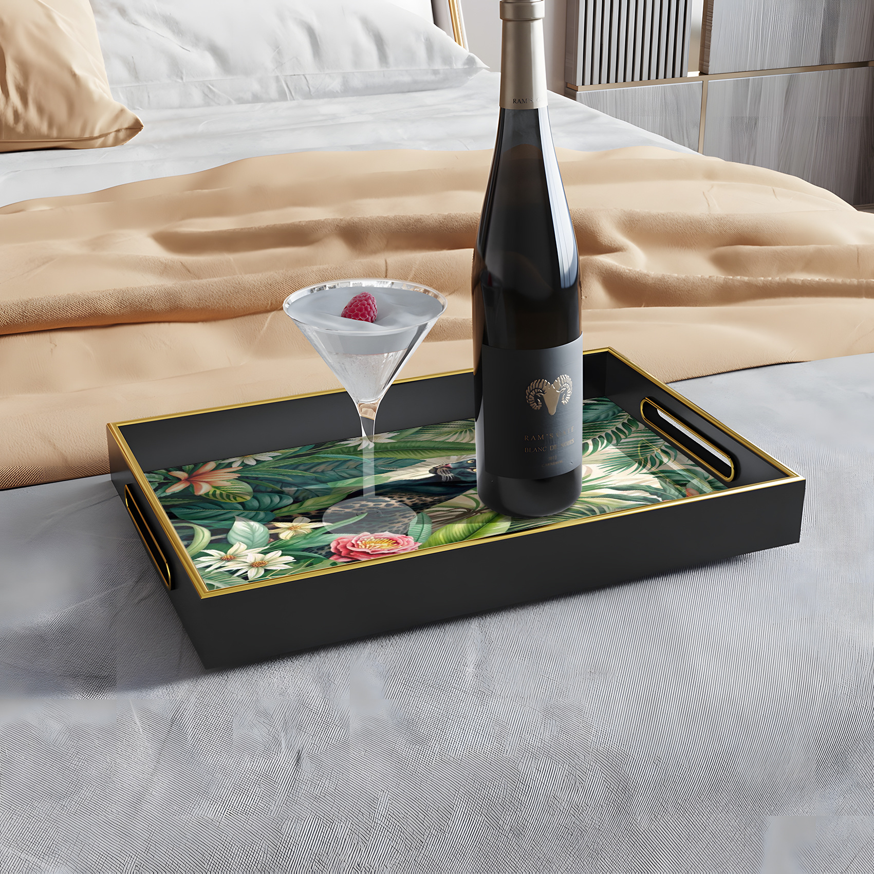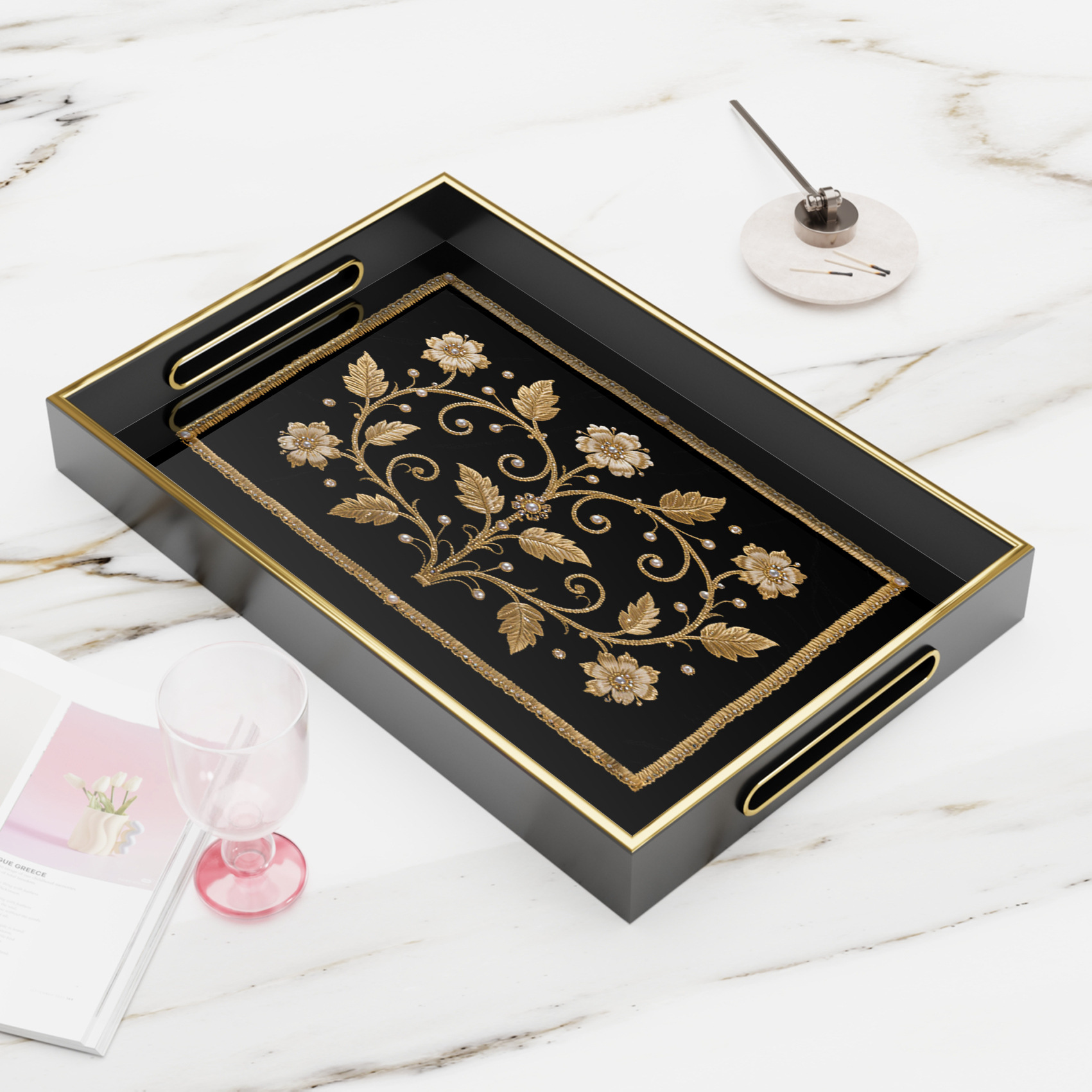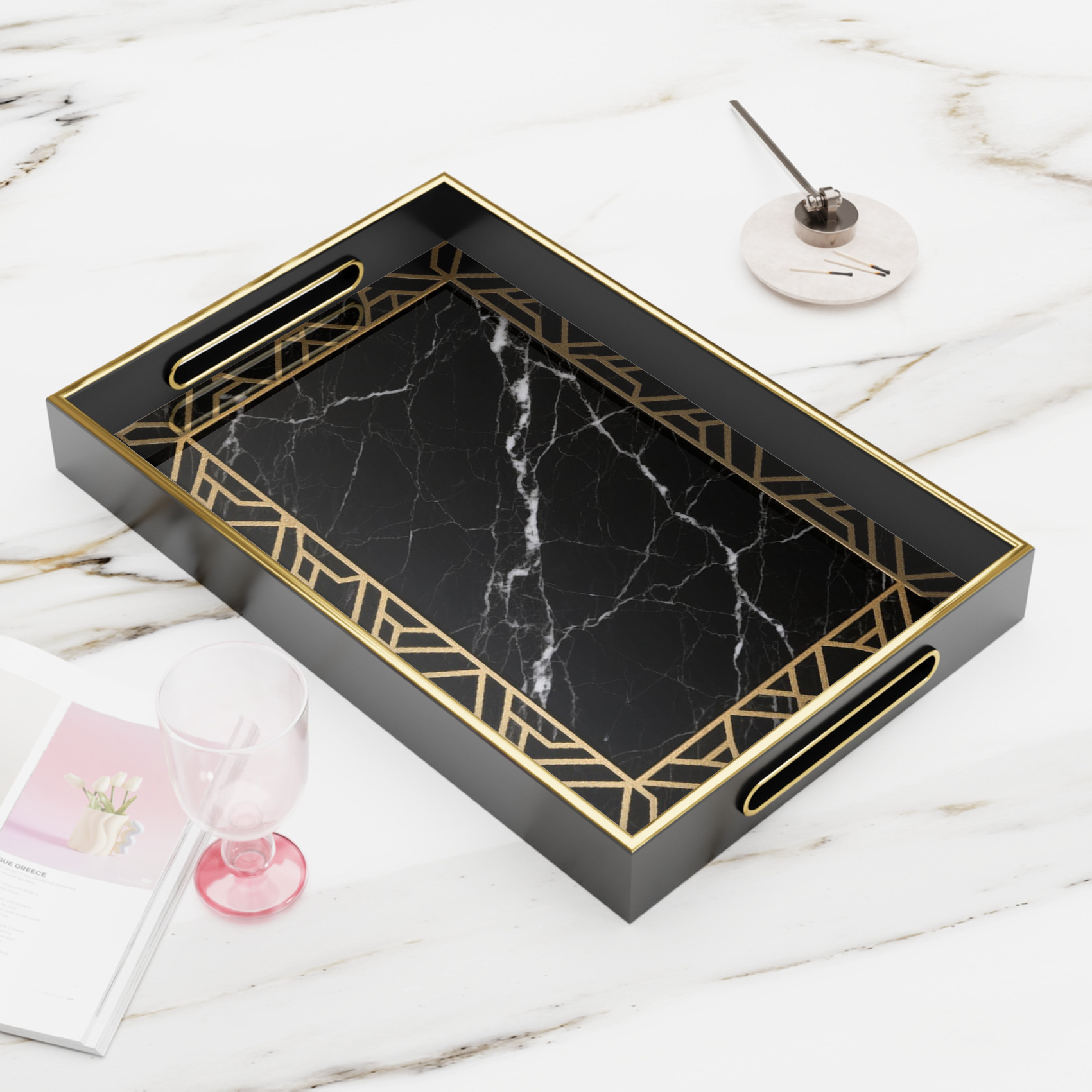 高品质创意家居玻璃印花装饰托盘JITPOD一件代发