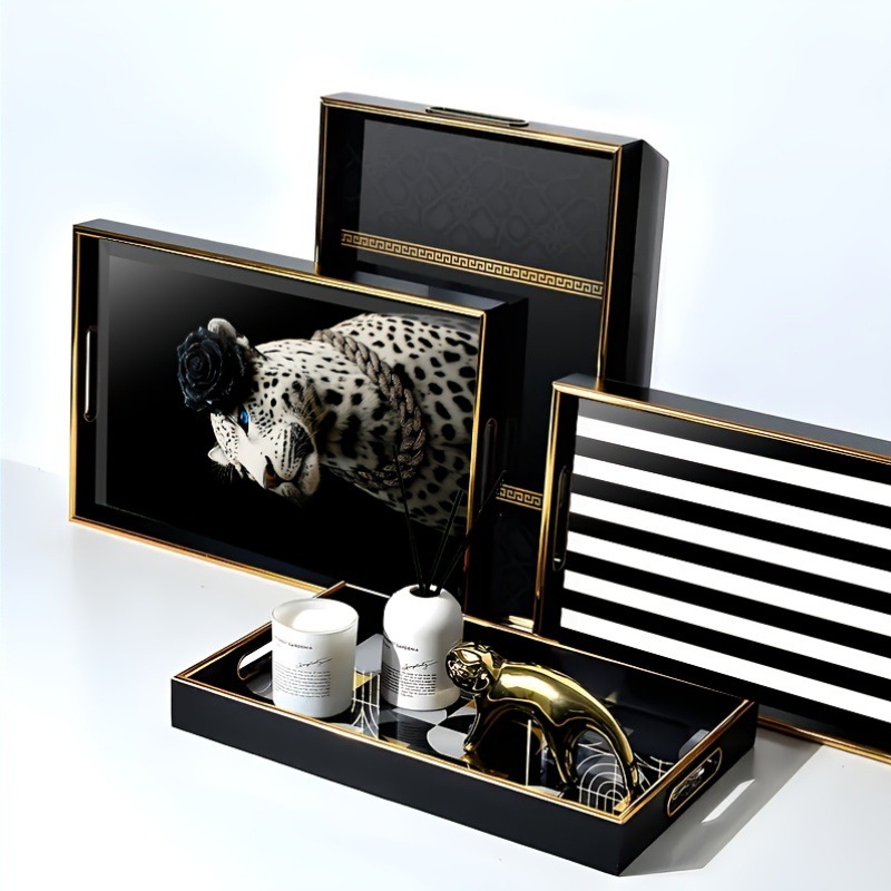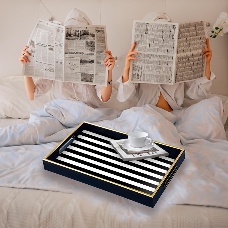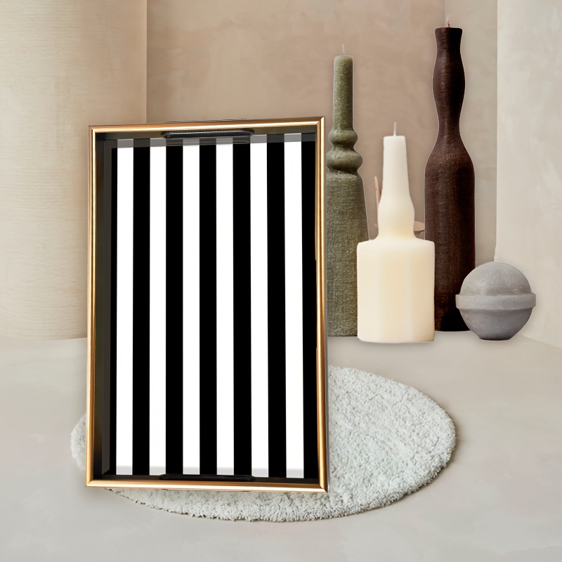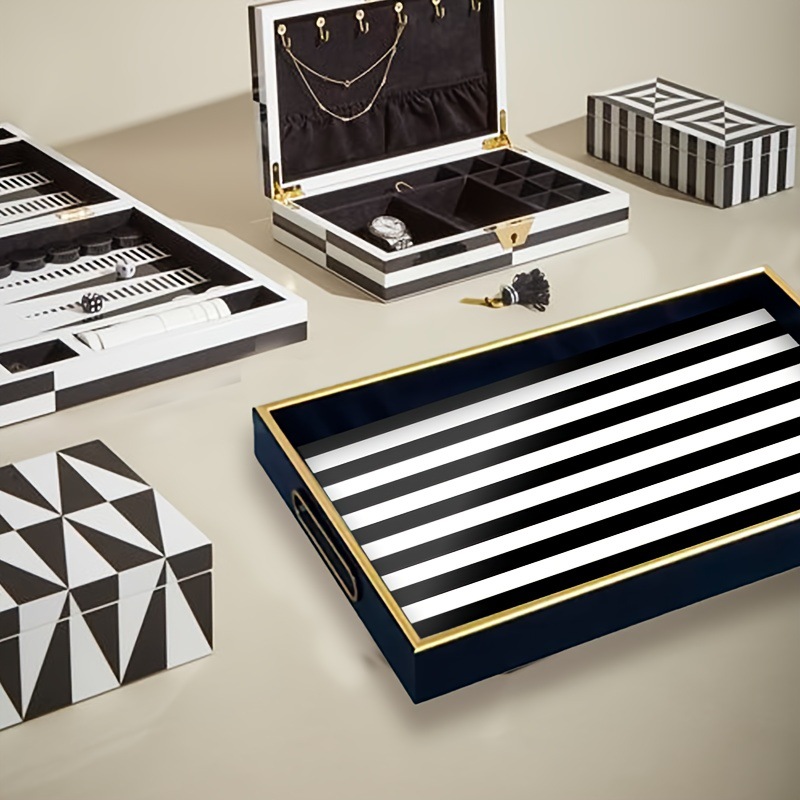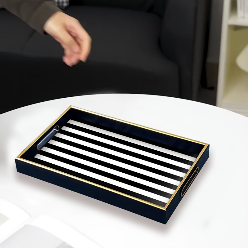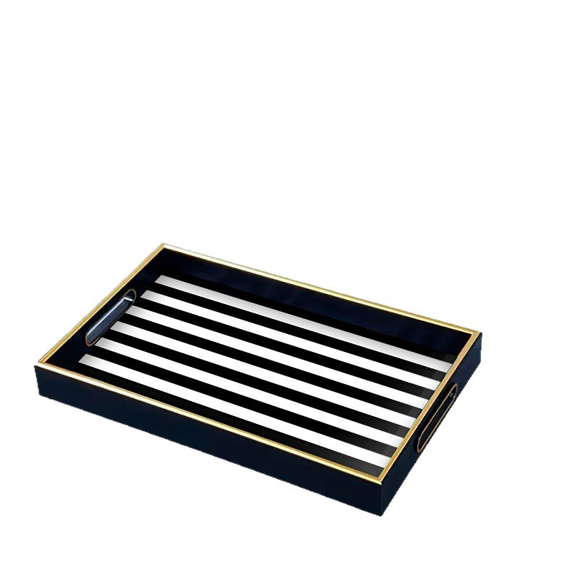 ins 风黑白竖纹托盘仿金属包边置物盘家居桌面零食水果盘现货厂家