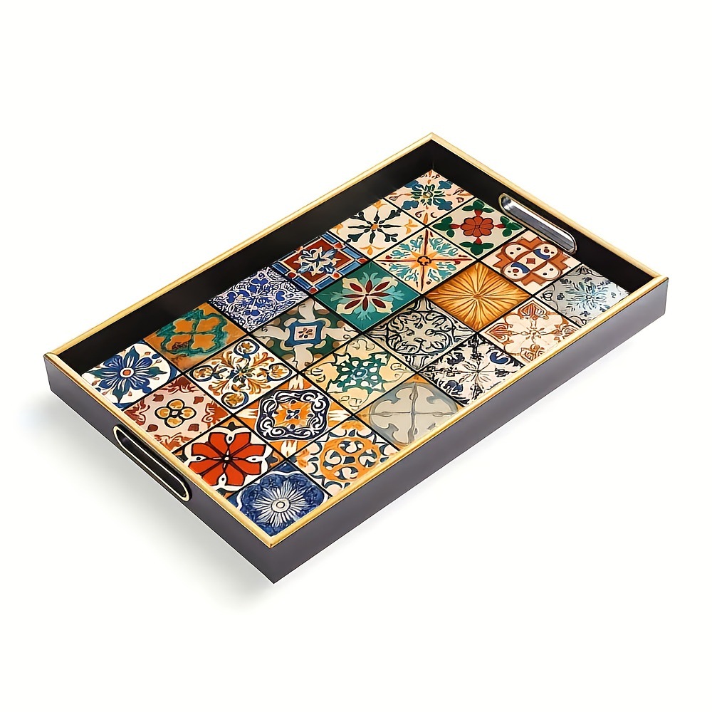 跨境爆款波西米亚装饰托盘马赛克拼贴创意茶盘客厅玄关钥匙收纳盘