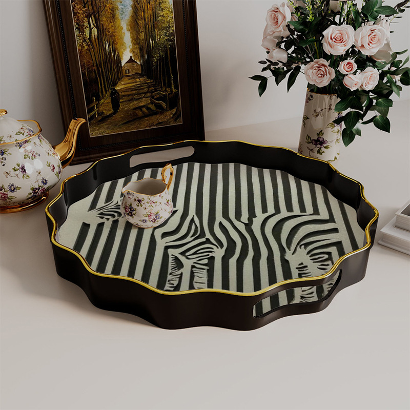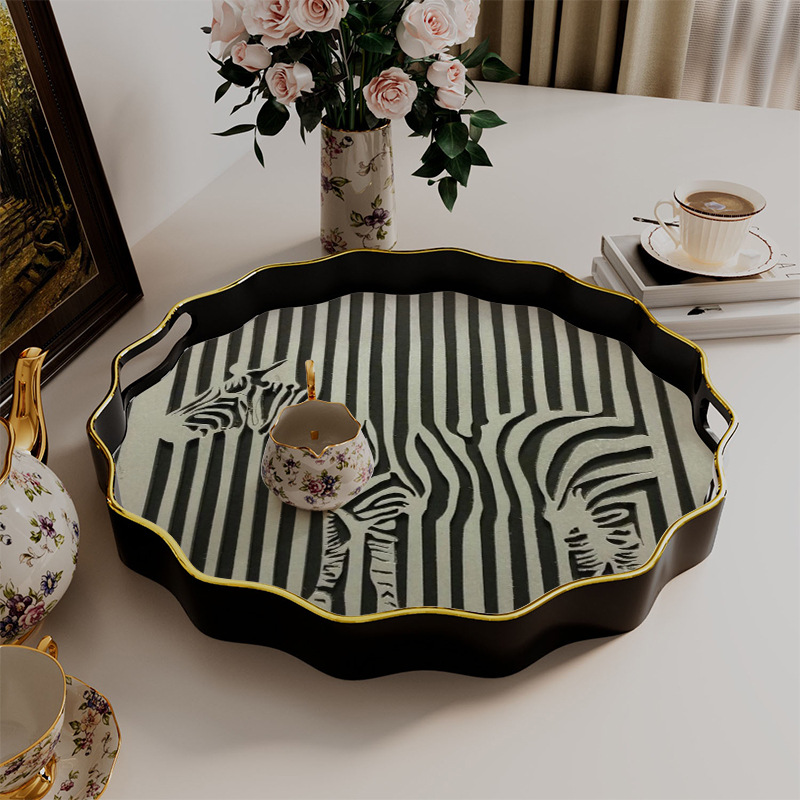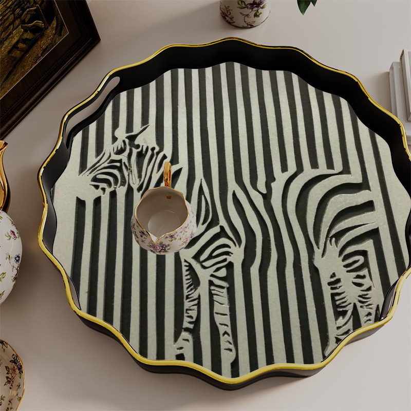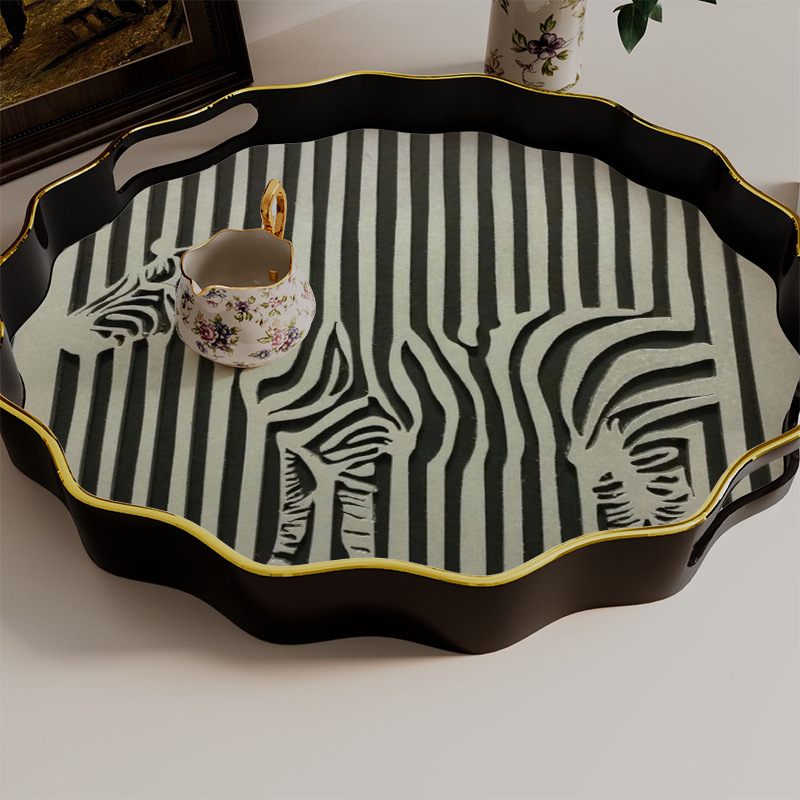 黑白斑马纹托盘 餐饮酒店摆台盘 家用多用收纳盘一件批发 English | 投诉