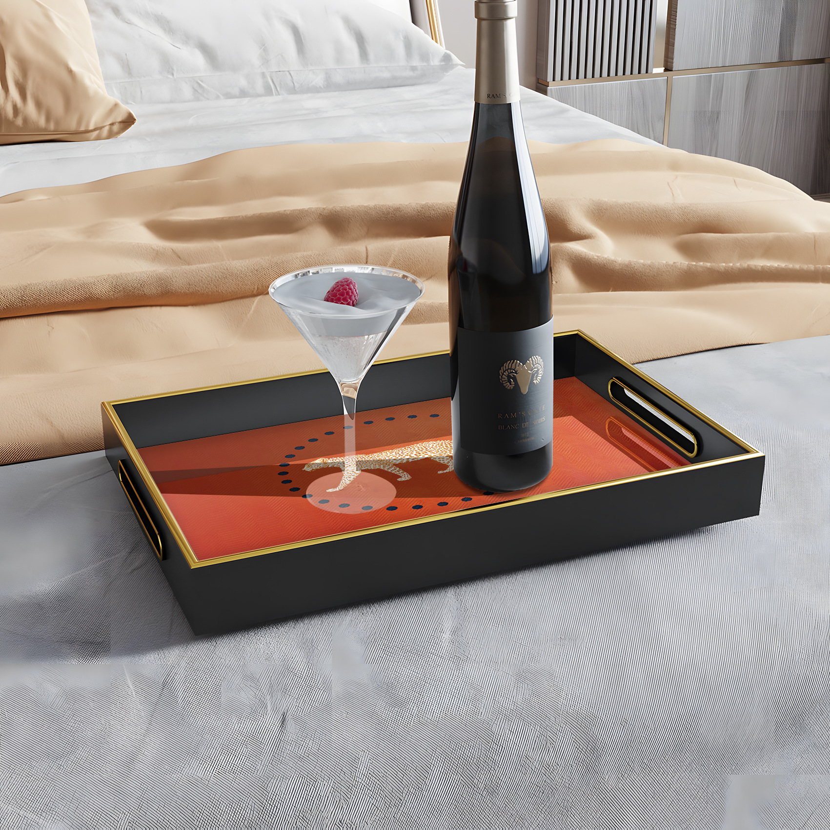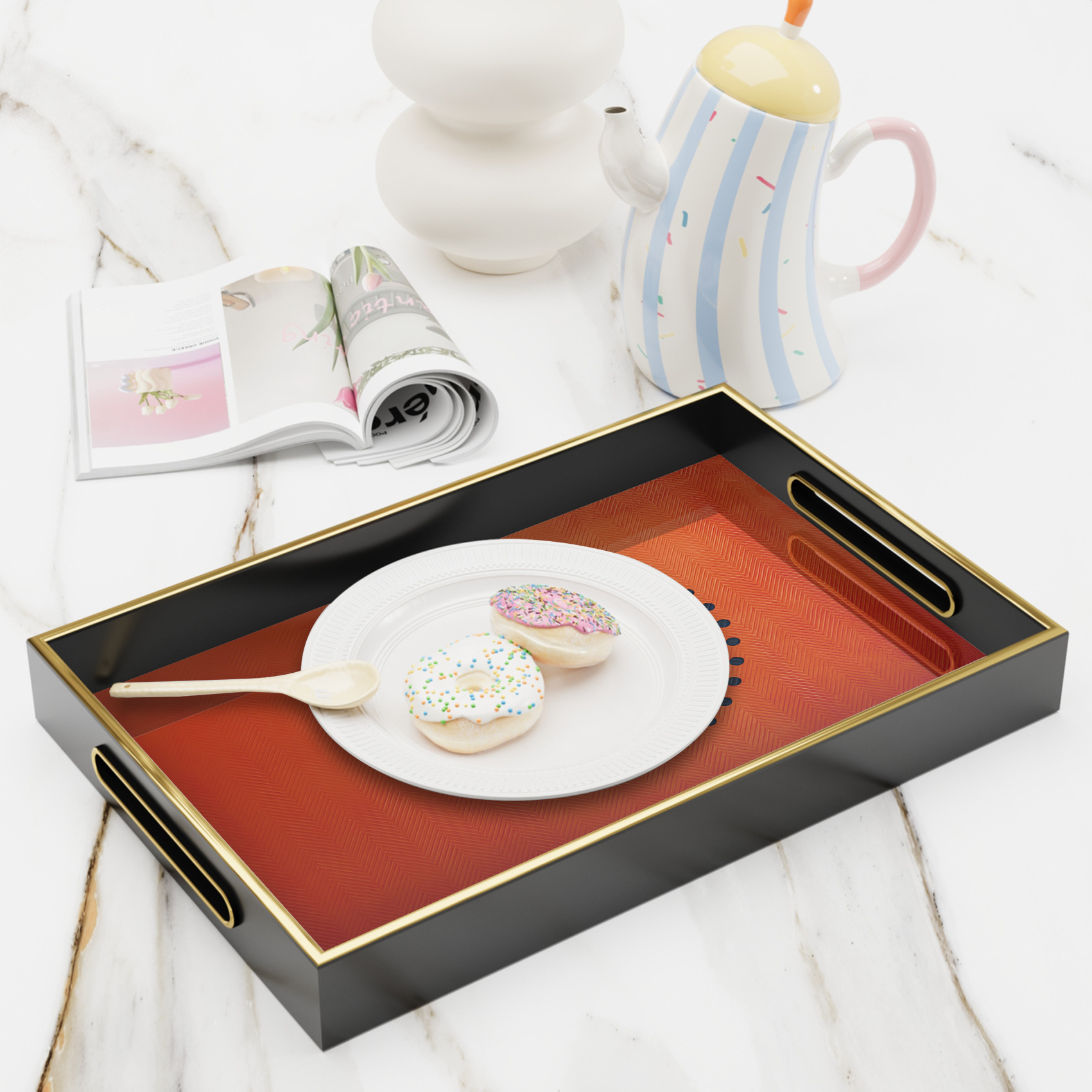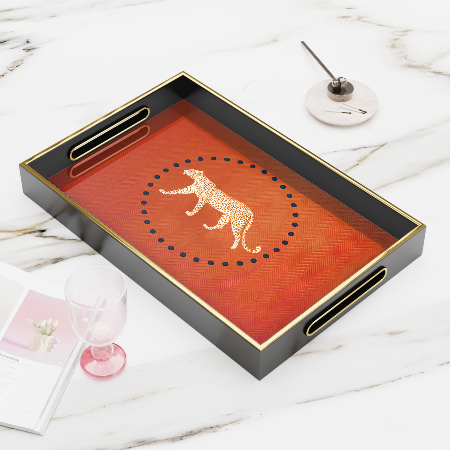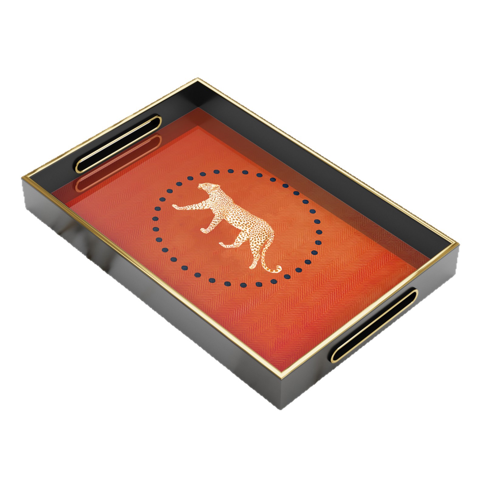 爆款金装饰托盘黑橙撞色金边酒店 KTV 点心盘厂家直供一件代发