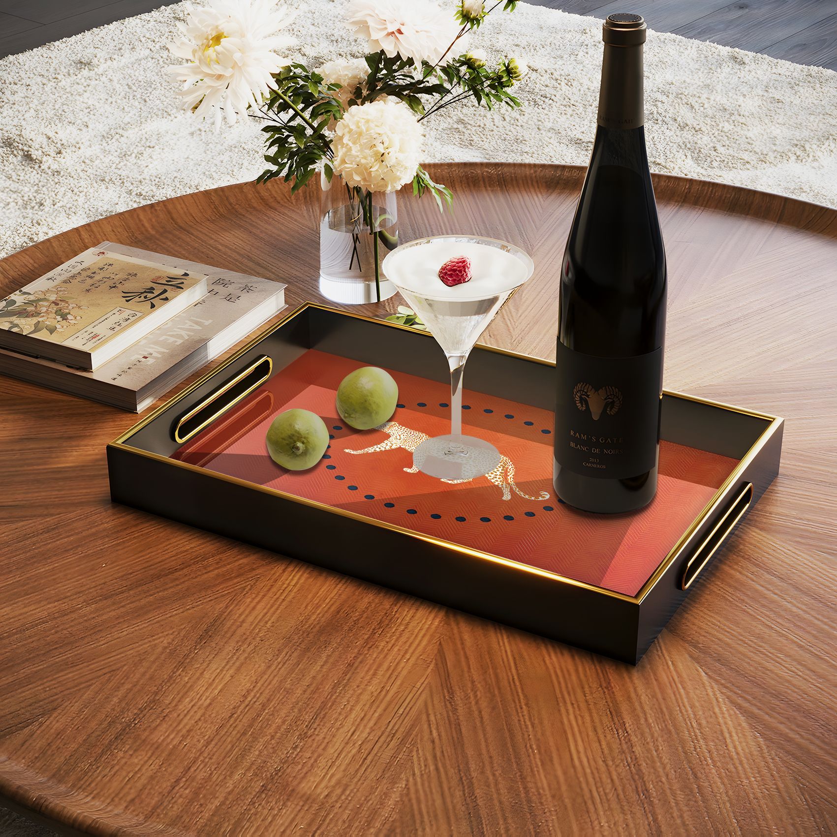 爆款金装饰托盘黑橙撞色金边酒店 KTV 点心盘厂家直供一件代发 English | 投诉
