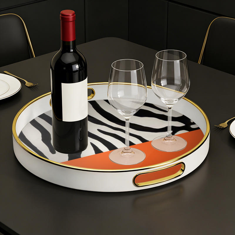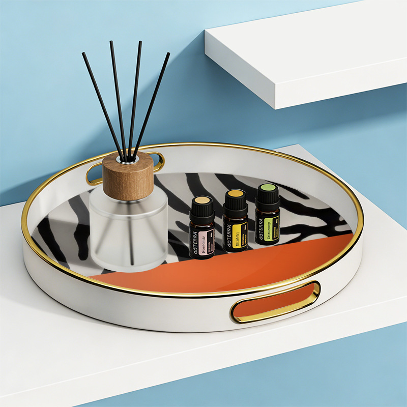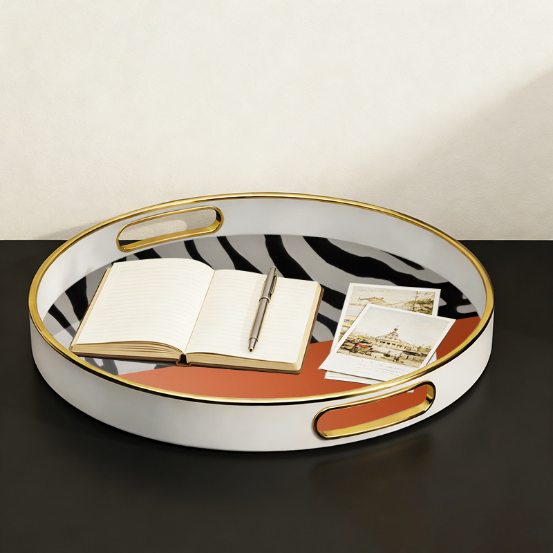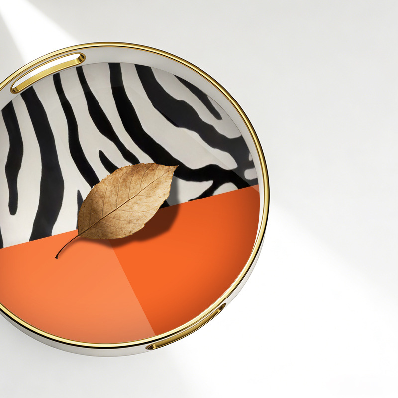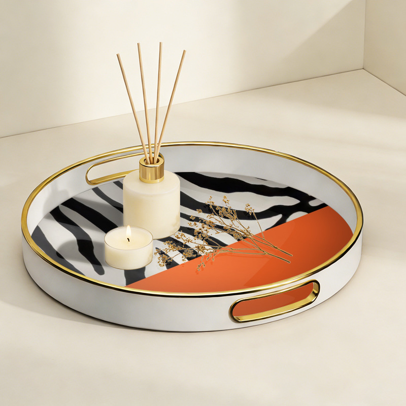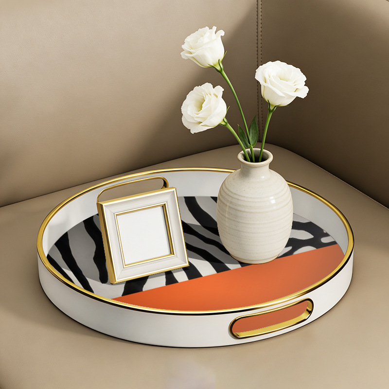 轻奢风圆形带把手托盘 客厅玄关收纳盘 高端样板间装饰盘厂家直供 English | 投诉