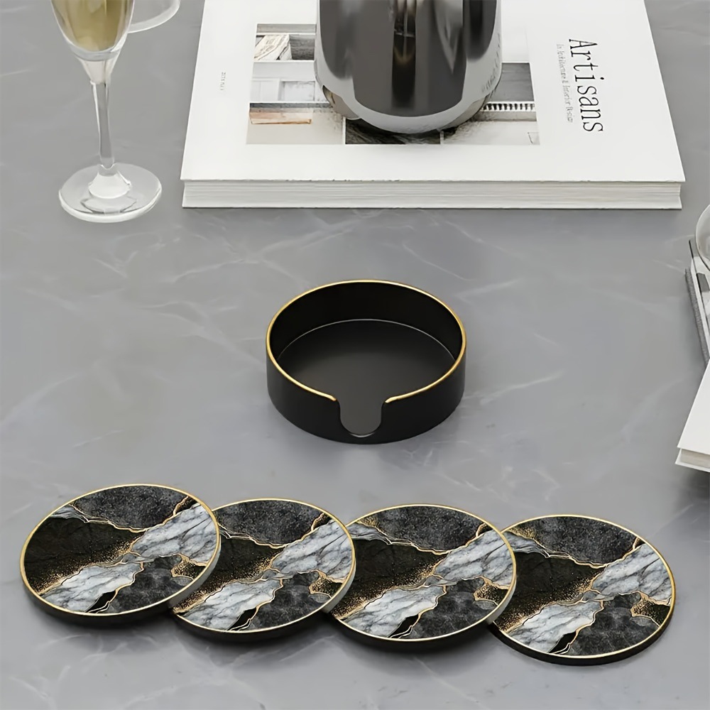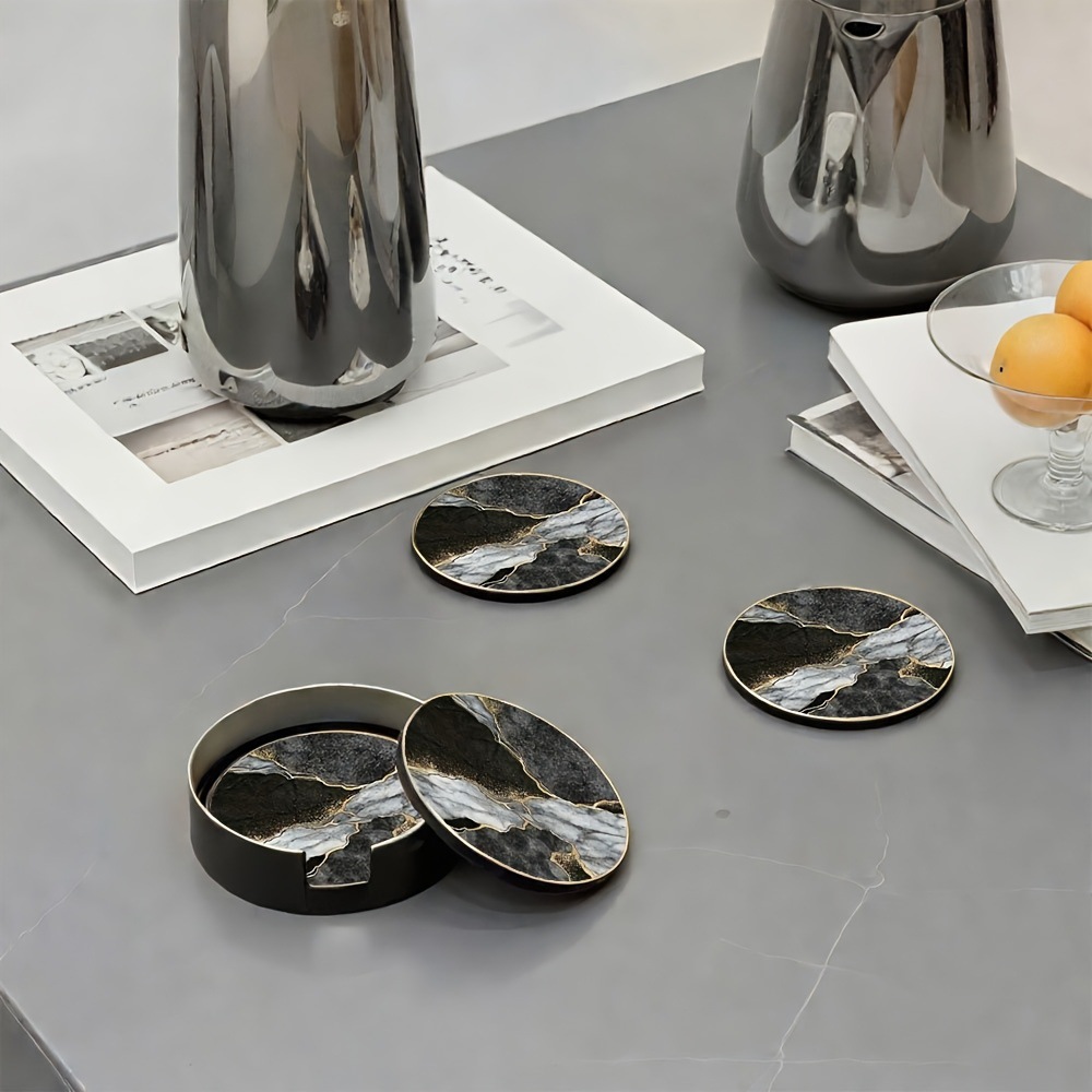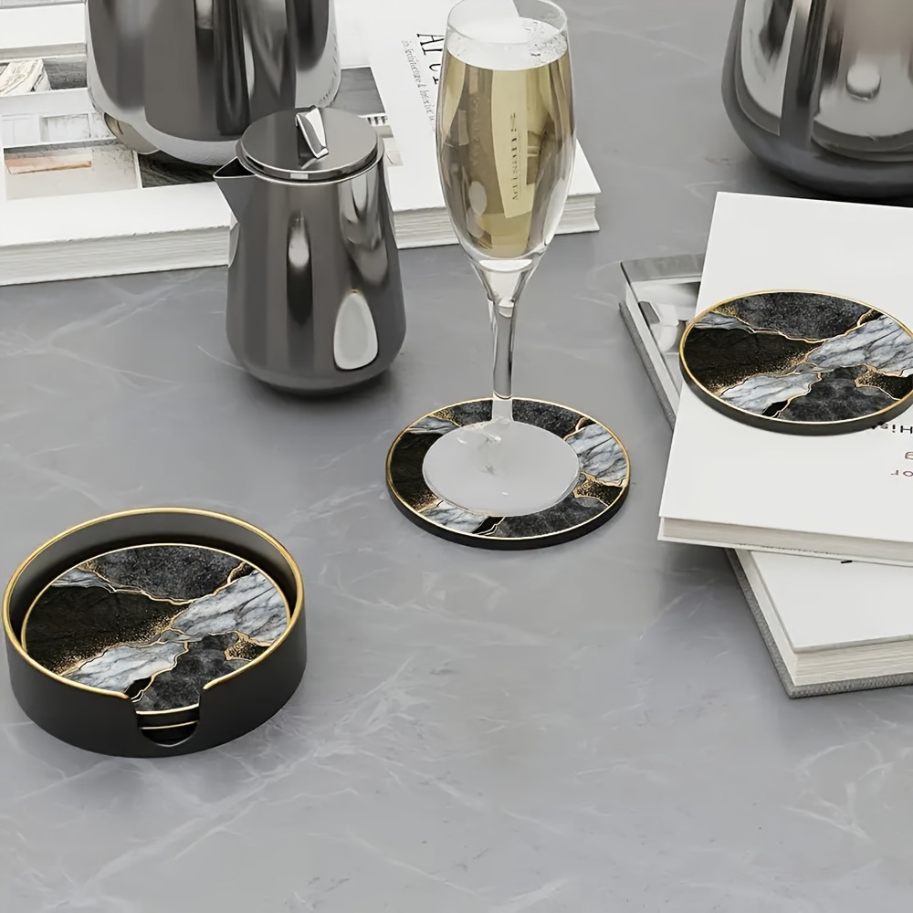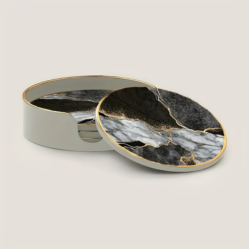 ins 风黑白鎏金杯垫带收纳盒 轻奢餐厅酒吧装饰垫 网红咖啡杯垫套 English | 投诉