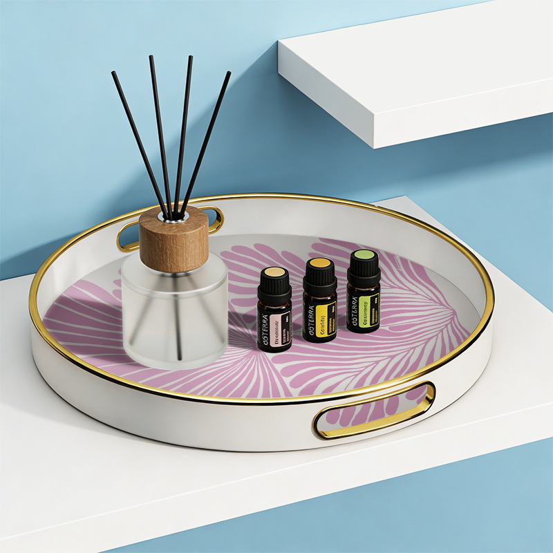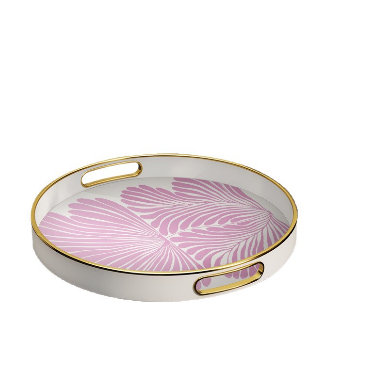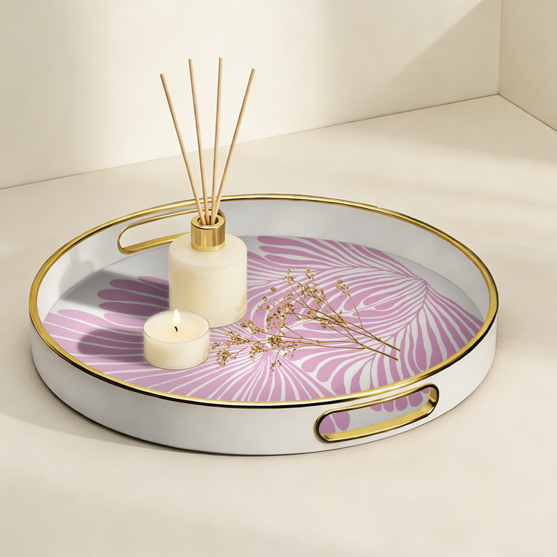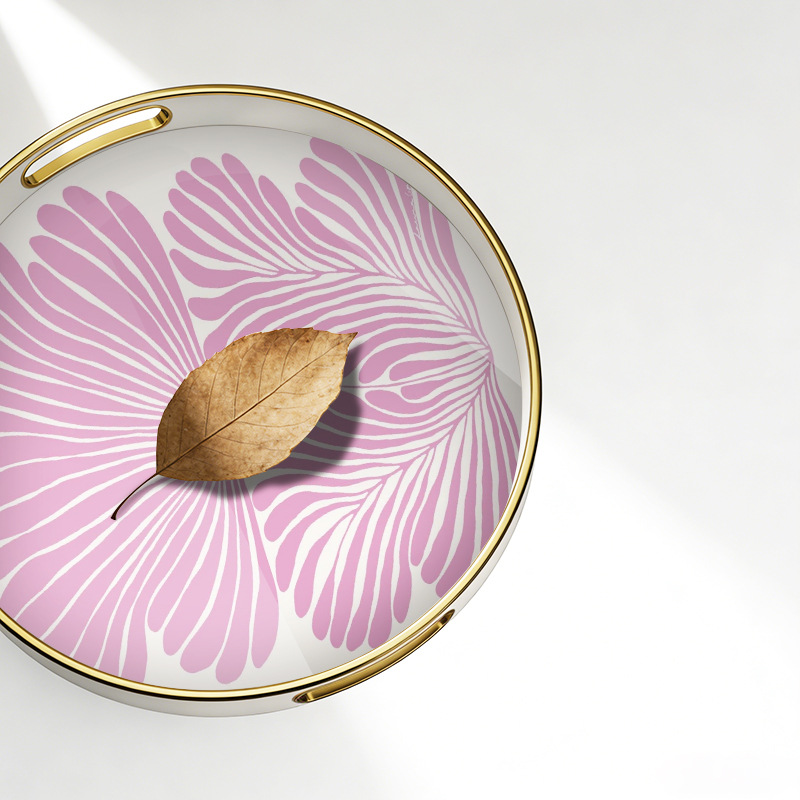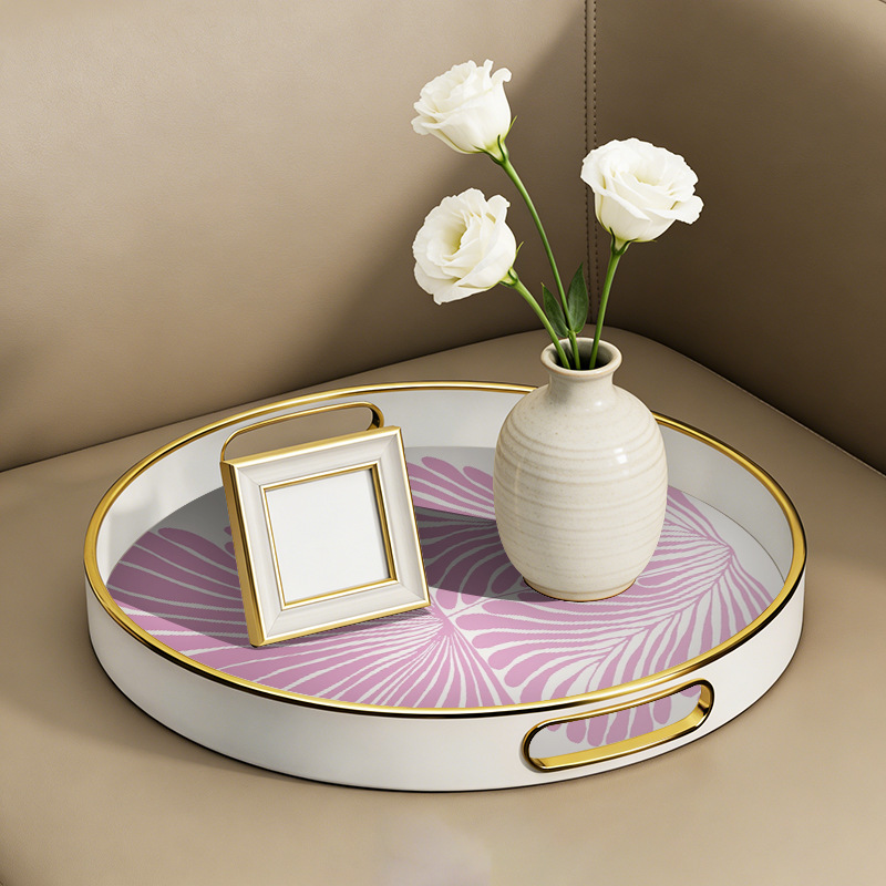 【源头厂货】ins 风紫叶金边圆形托盘 家用客厅水杯收纳盘 轻奢下