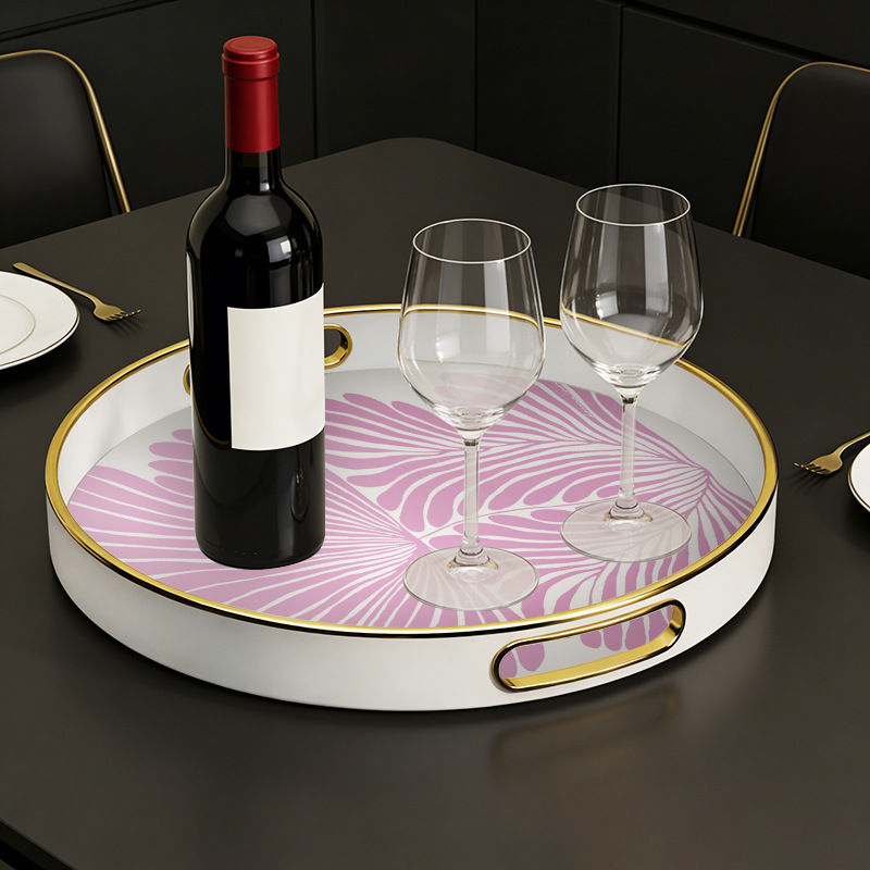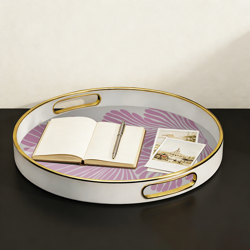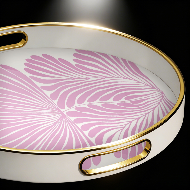 【源头厂货】ins 风紫叶金边圆形托盘 家用客厅水杯收纳盘 轻奢下 English | 投诉