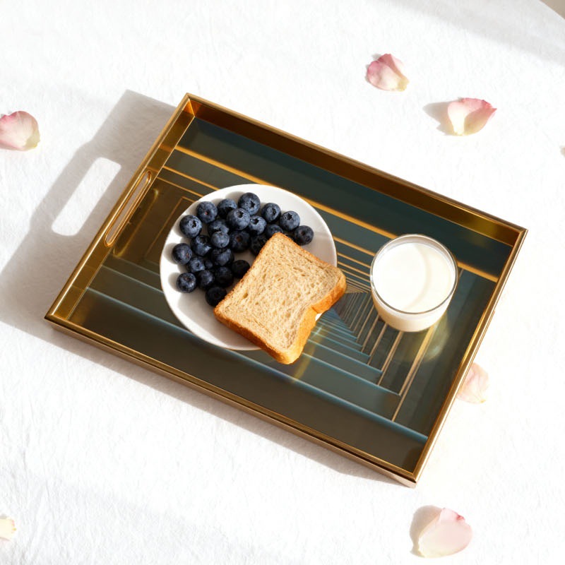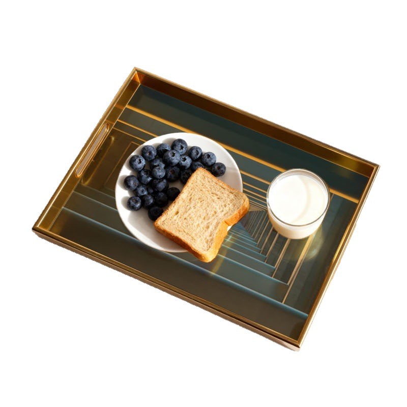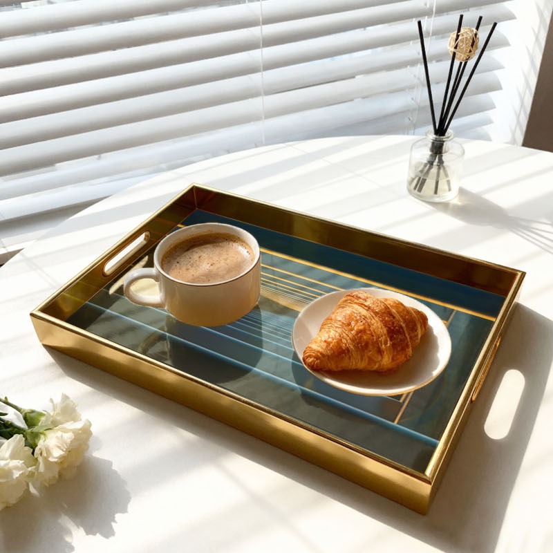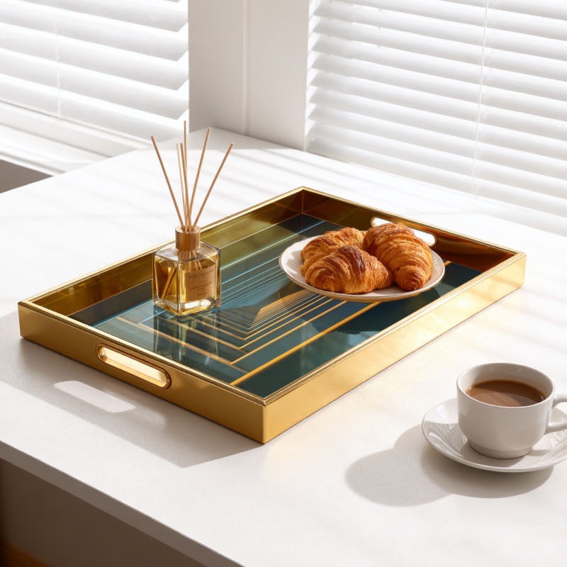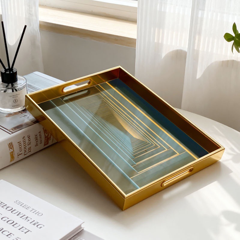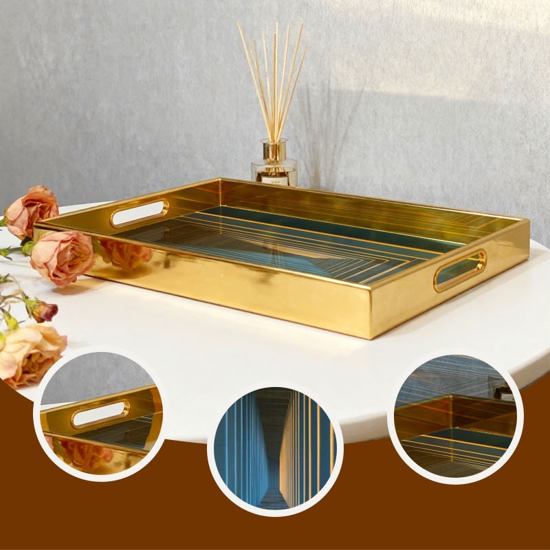 跨境专供立体渐变托盘金色边框收纳盘玄关桌面整理盘定制一件代发