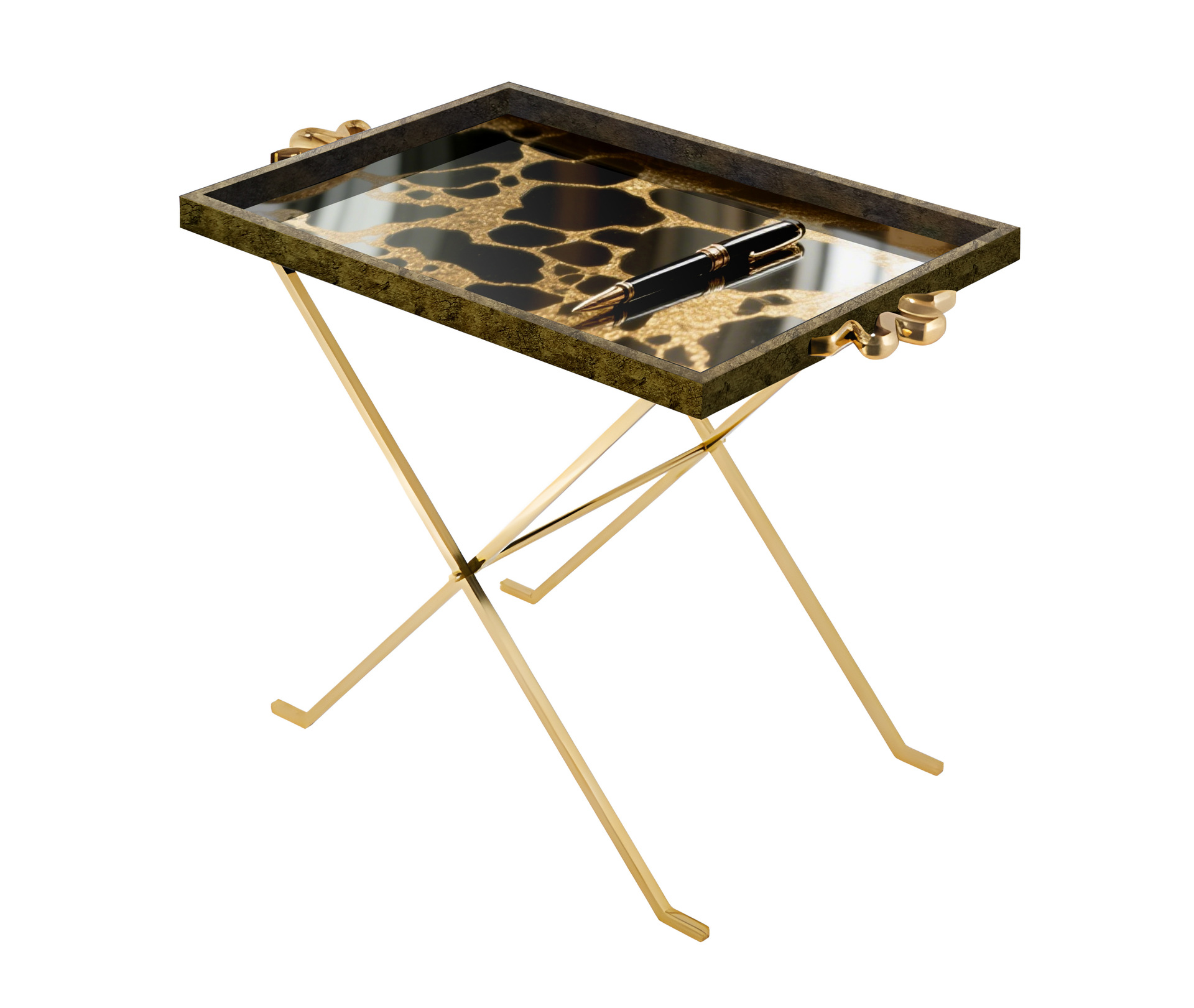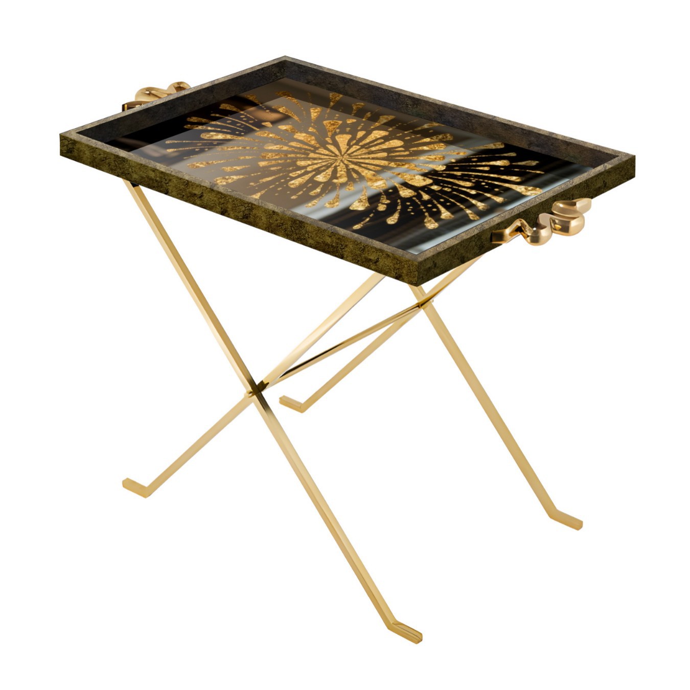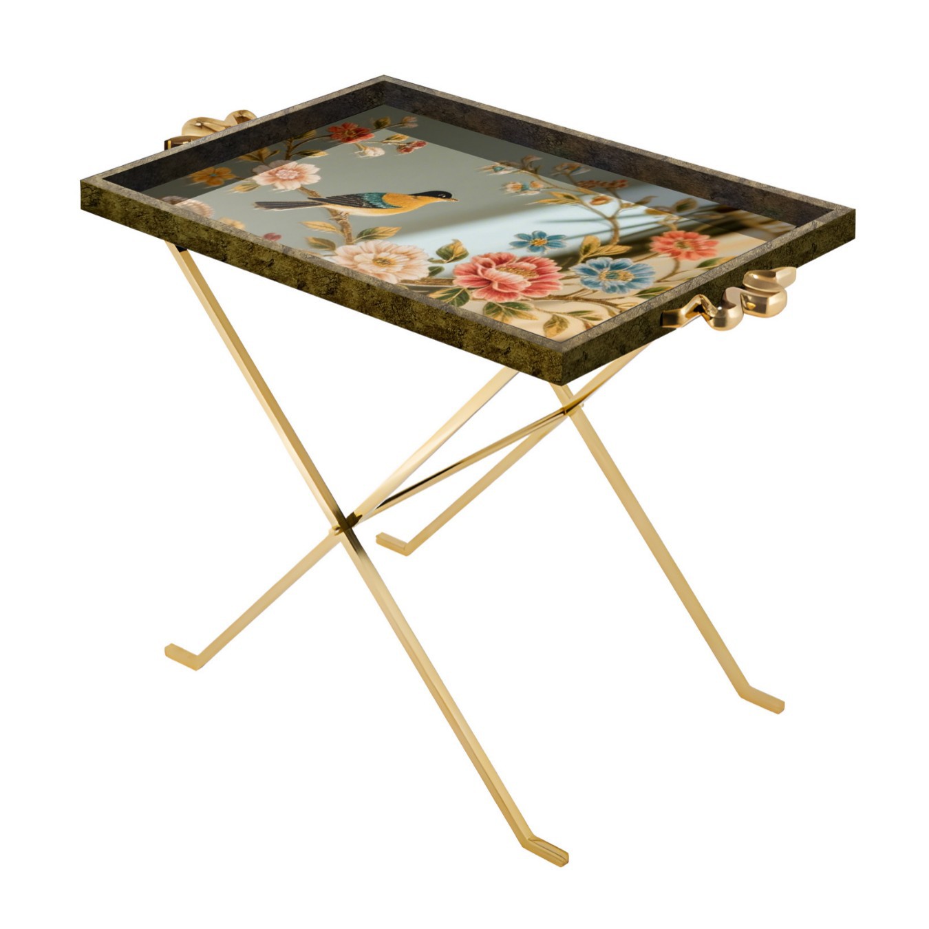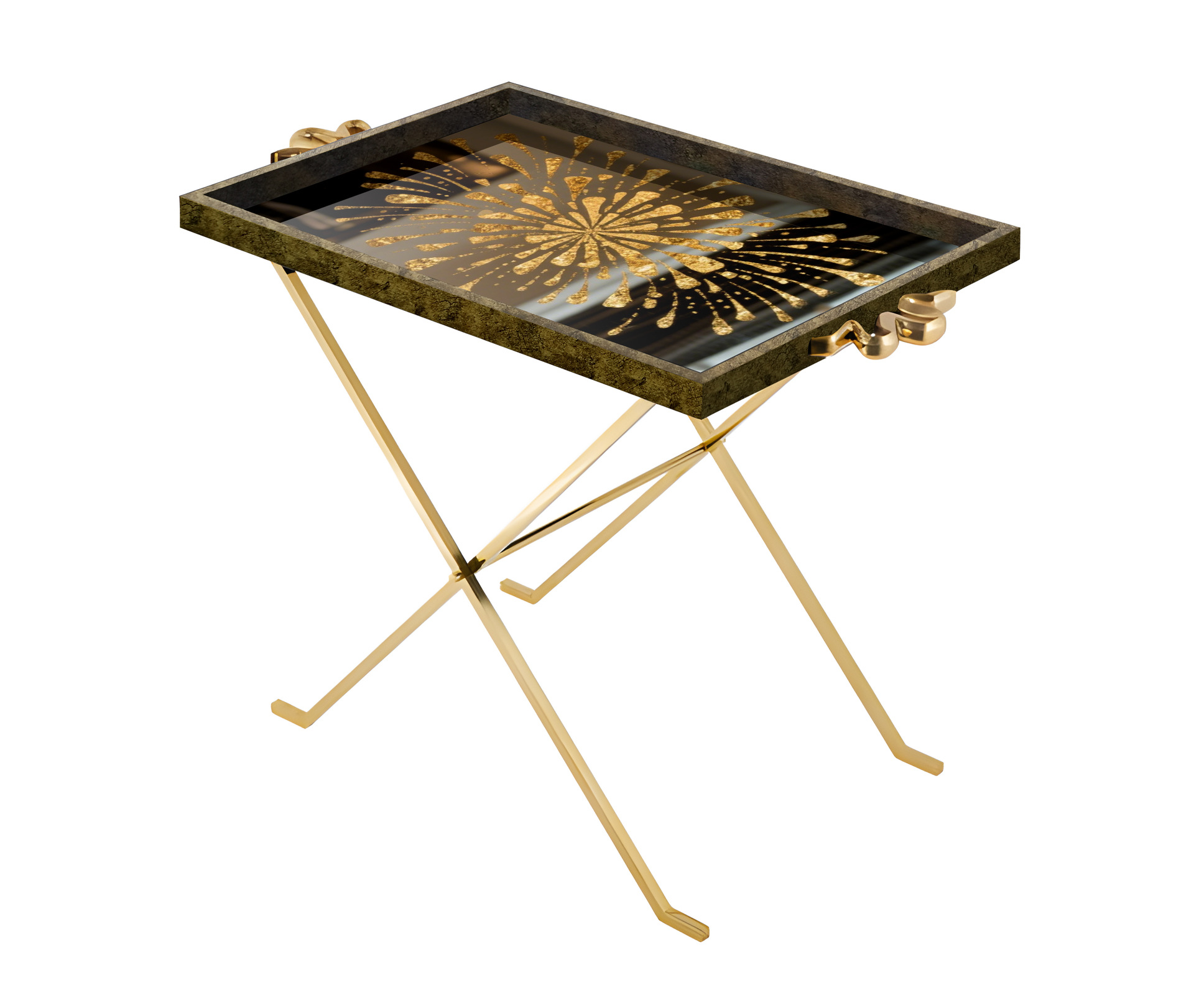 矩形镜面印花可折叠便捷式边几,户外室内两用边桌