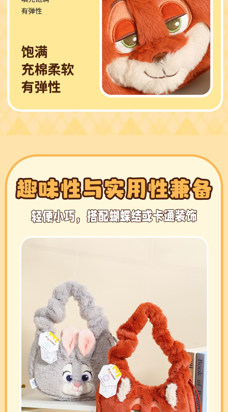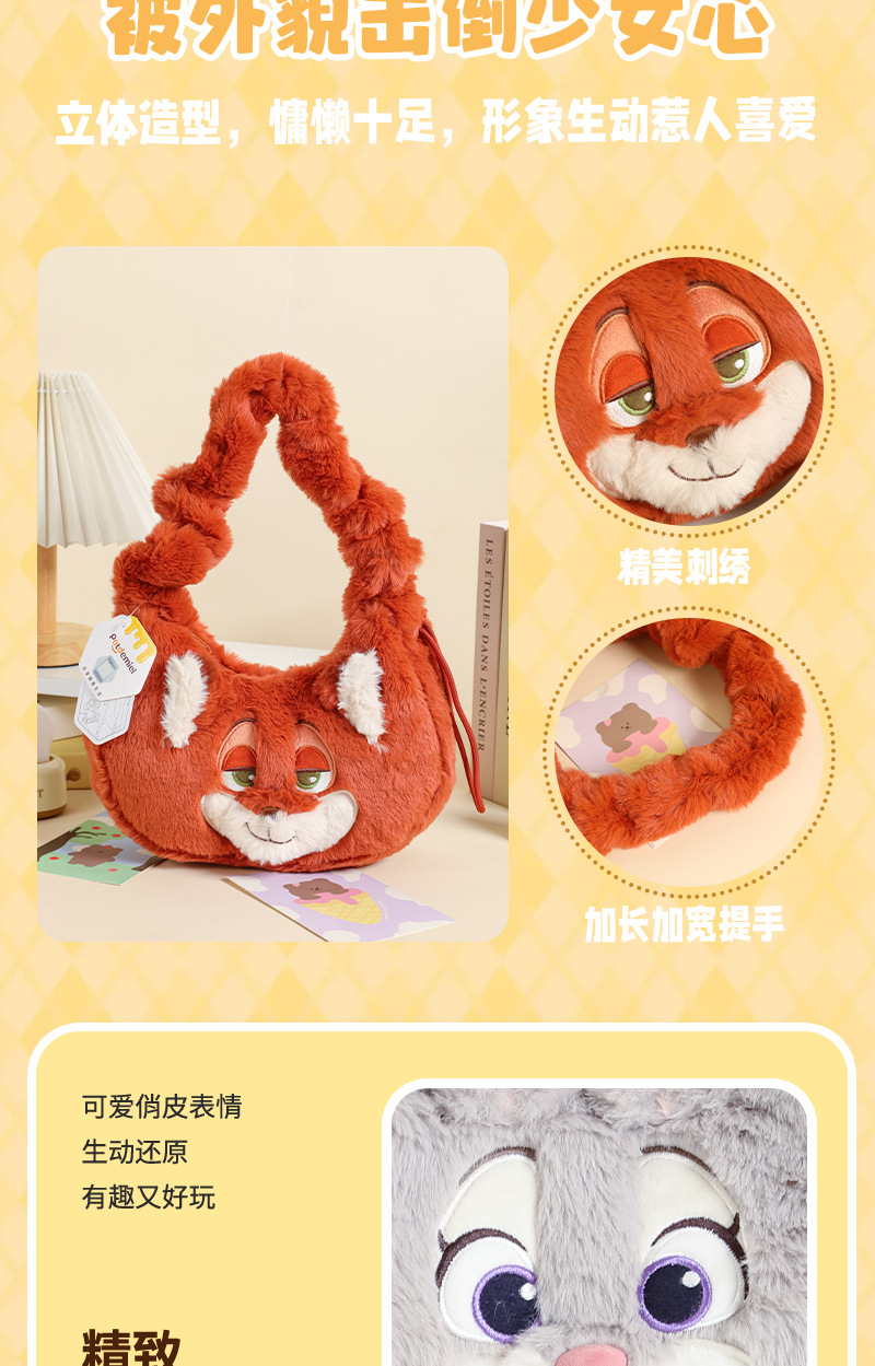 迪士疯狂动物城朱迪尼克毛绒玩偶心动腋下包狐尼克玩偶单肩包 English | 投诉