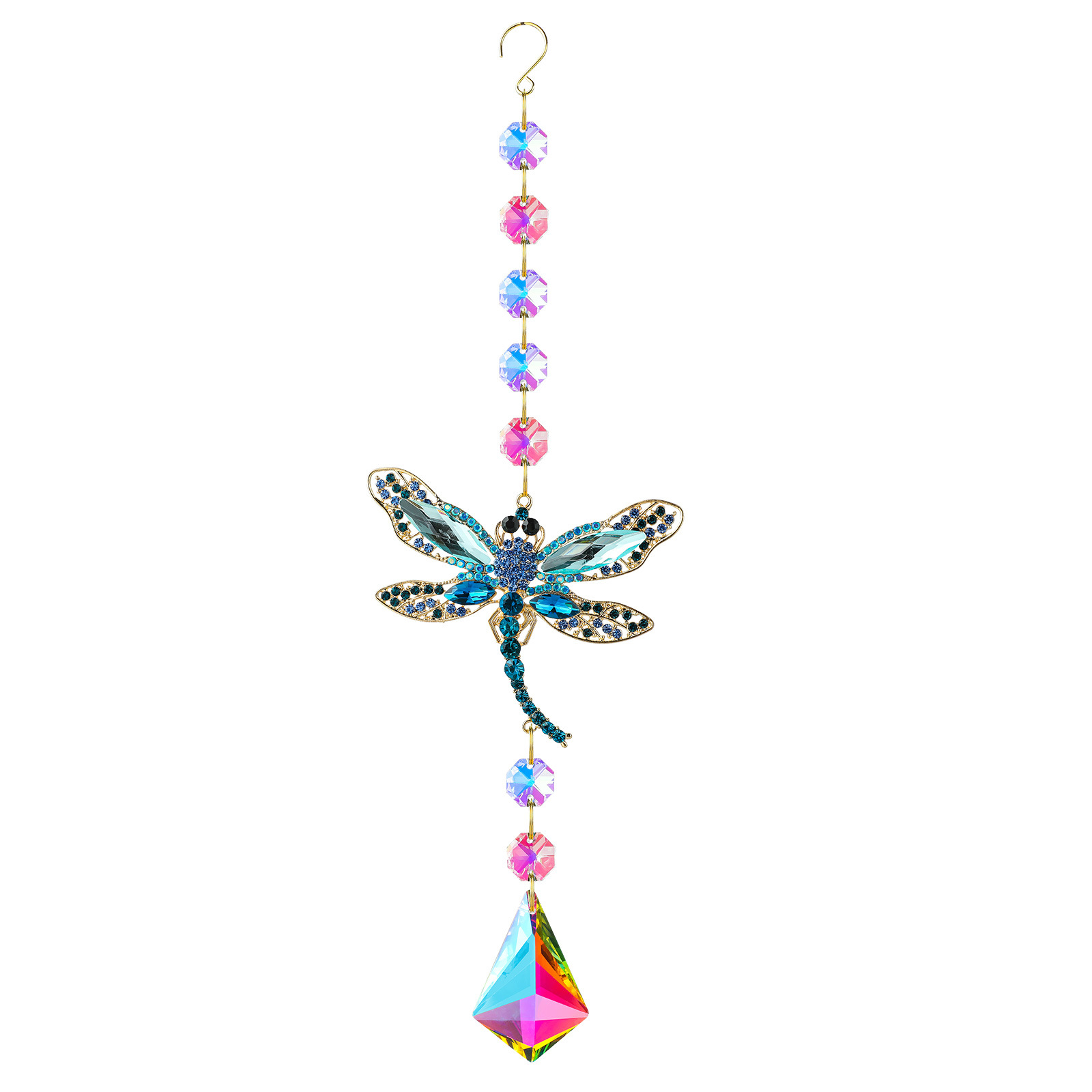 创意庭院风铃装饰阳光捕手集光蝴蝶蜻蜓镶钻网格水晶挂件跨境货源