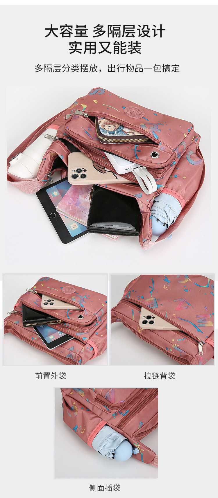 2025跨境新款妈妈包时尚百搭包女包女士斜挎包单肩轻便多层休闲包 English | 投诉