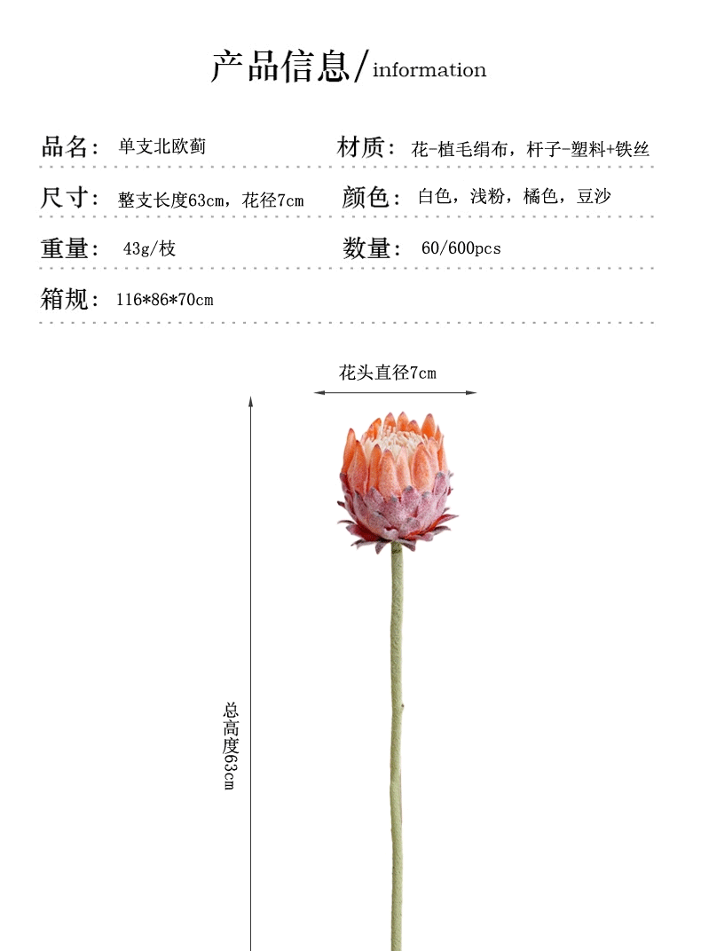 单支北欧蓟假花家居婚礼装饰摆件婚庆摄影道具仿真帝王花仿真花 English | 投诉