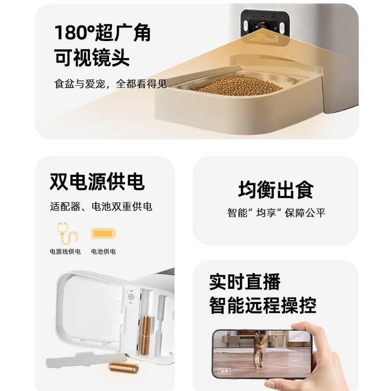 蓝牙连接 可手动调节摄像头角度 可见食盆