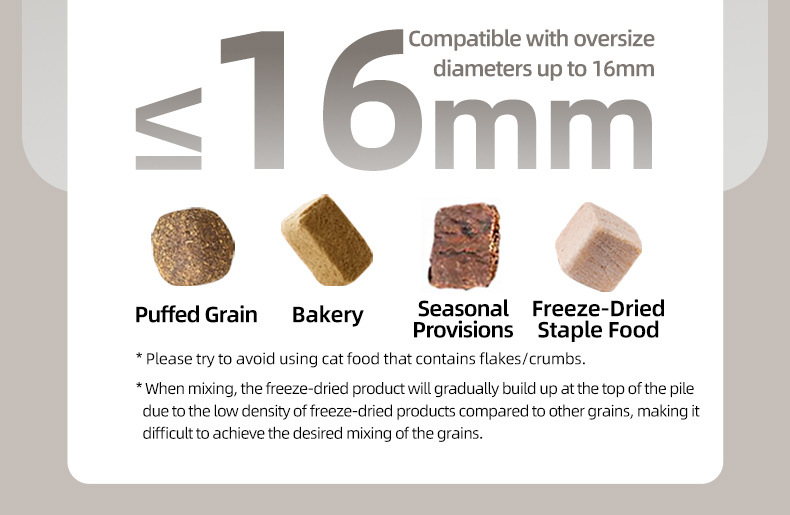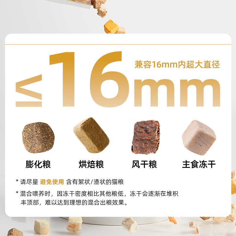 可兼容16mm内的干性非粘性宠粮冻干