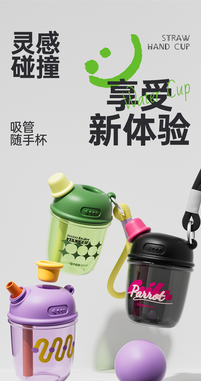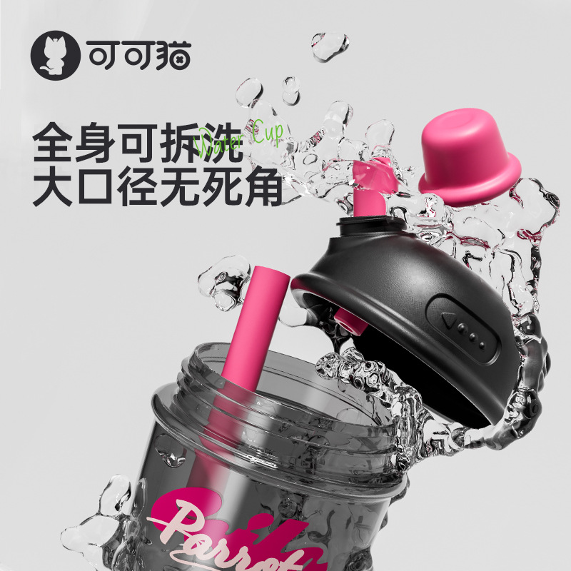现货潮流水杯耐摔母婴级带手柄吸管杯潮酷茶水分离水杯大容量杯子
