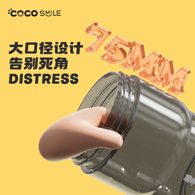 新款可可猫花朵转转玻璃杯大肚吸管杯家用办公大容量水杯一件代发