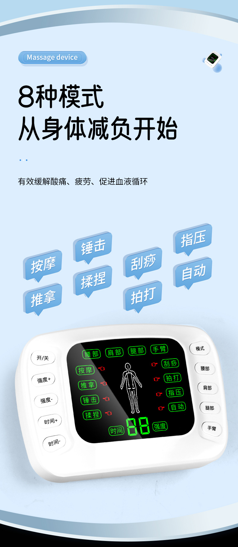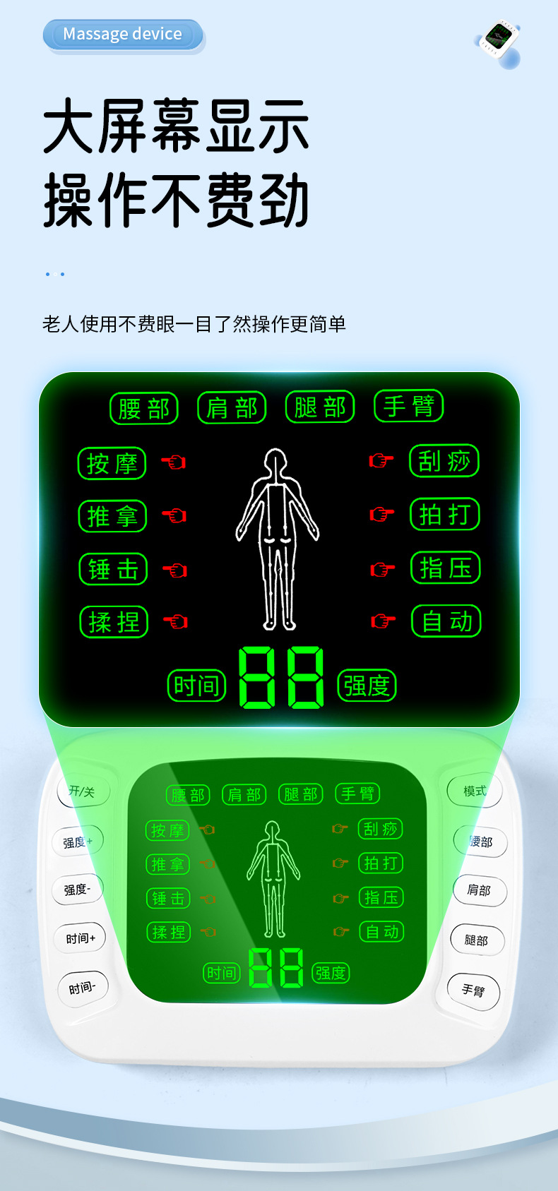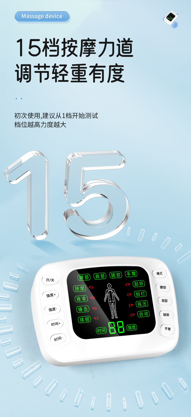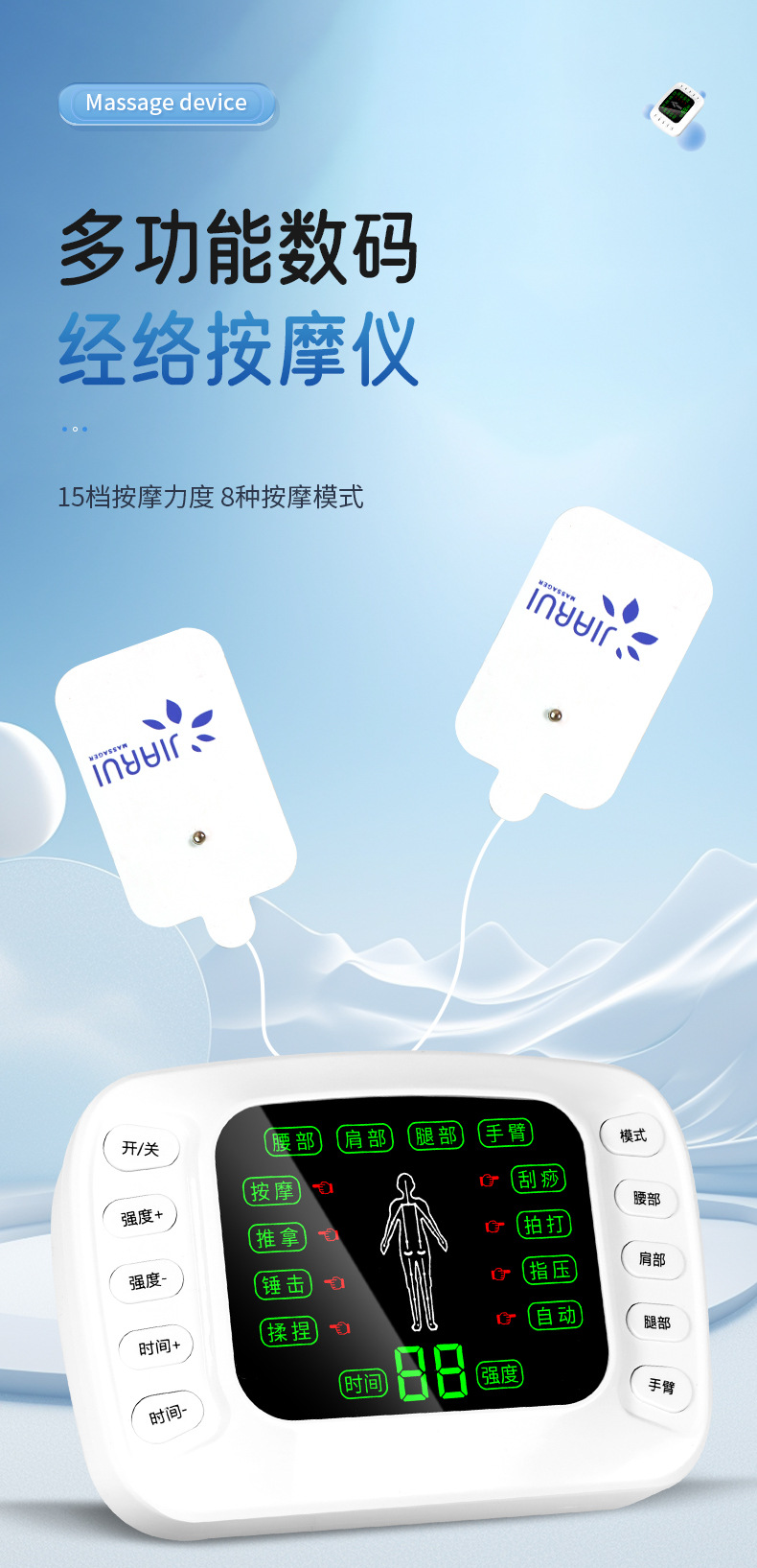 (一拖2扣子线1条,一拖4扣子线1条,粘板1个, 贴片2对, 中文裸机1个,中文说明书 1个,穴位图1张, 欧规电源1个,USB线1条,包装,吸塑 )