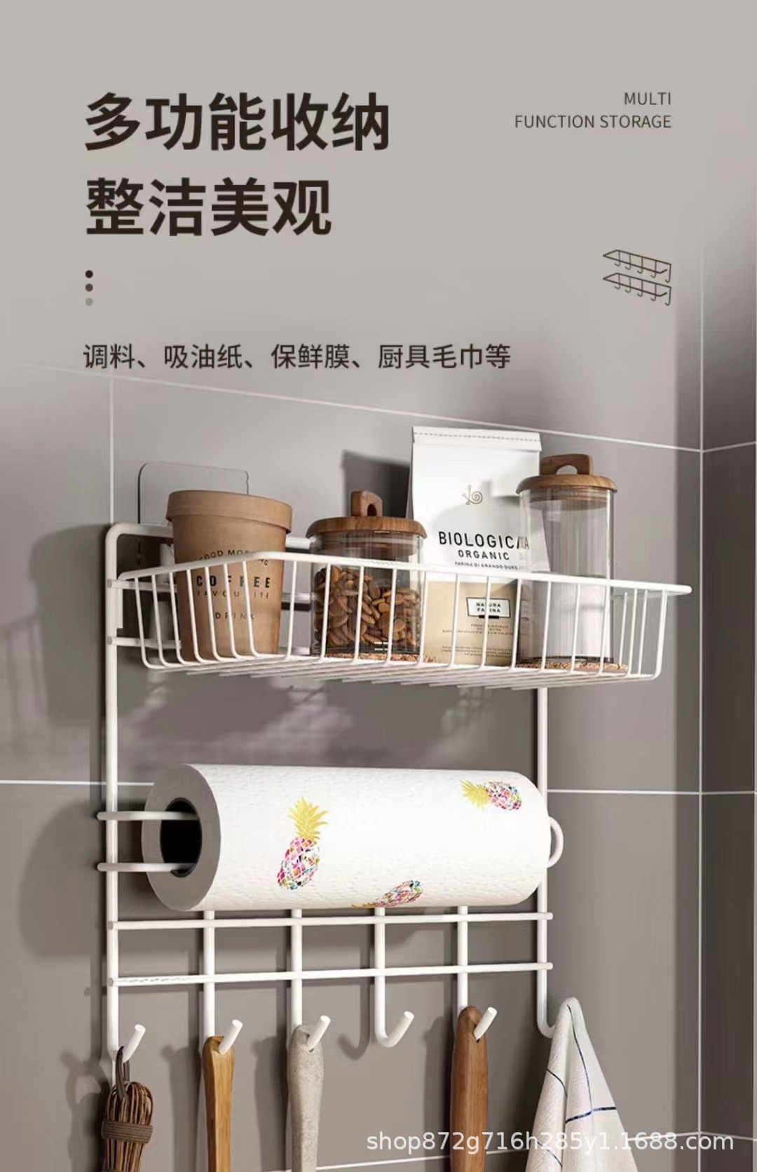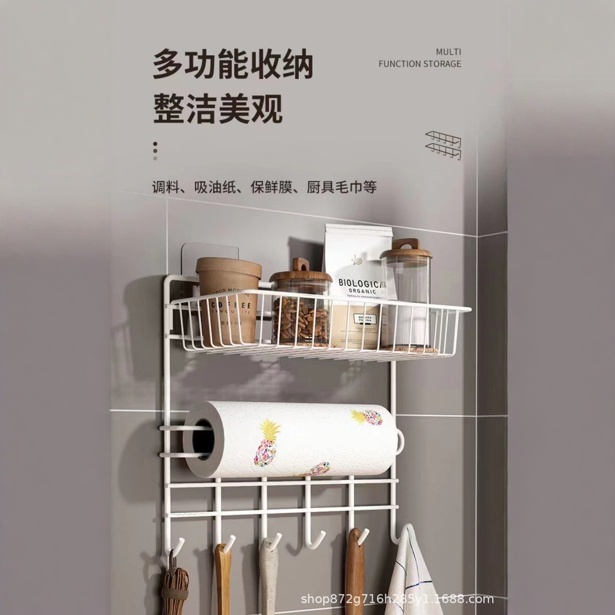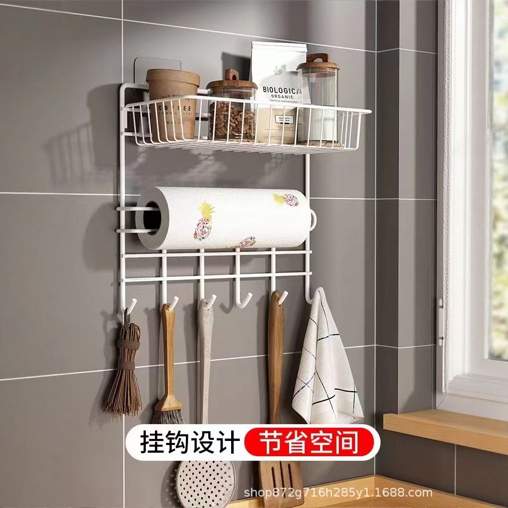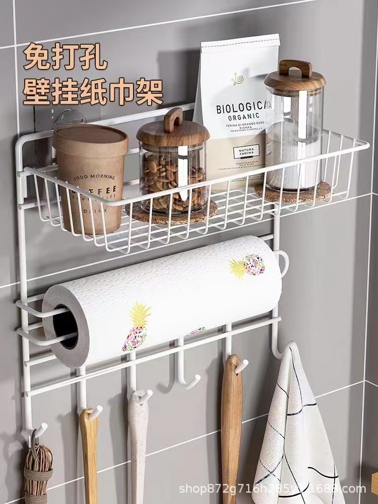 厨房置物架免打孔壁挂式纸巾架冰箱侧收纳架子保鲜膜侧壁挂架神器 English | 投诉