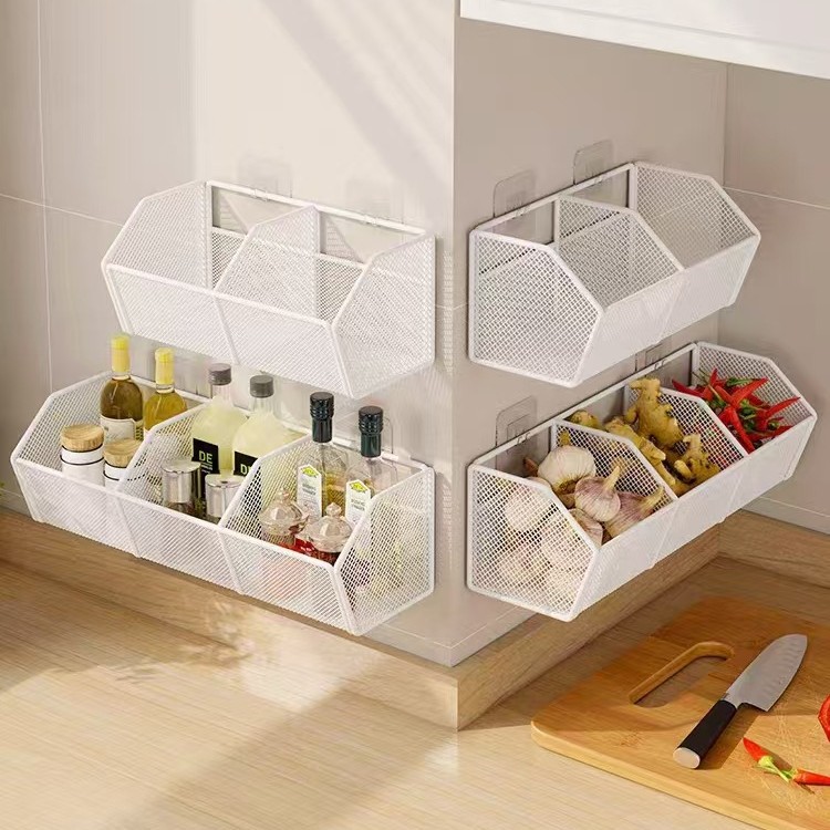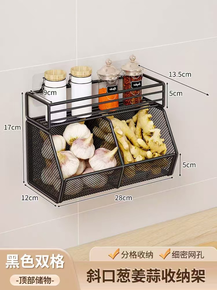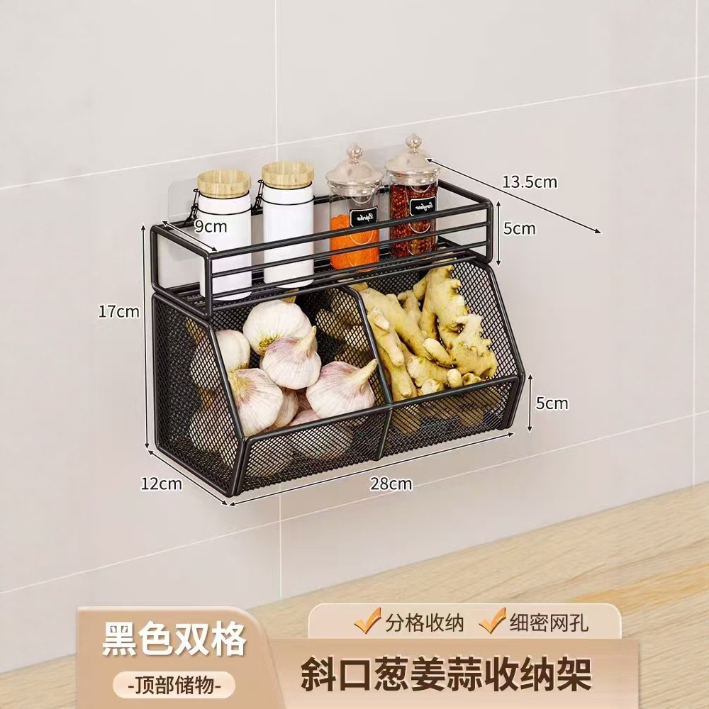 厨房墙上置物架免打孔多功能葱姜蒜双层收纳筐墙上调料品收纳神器 English | 投诉