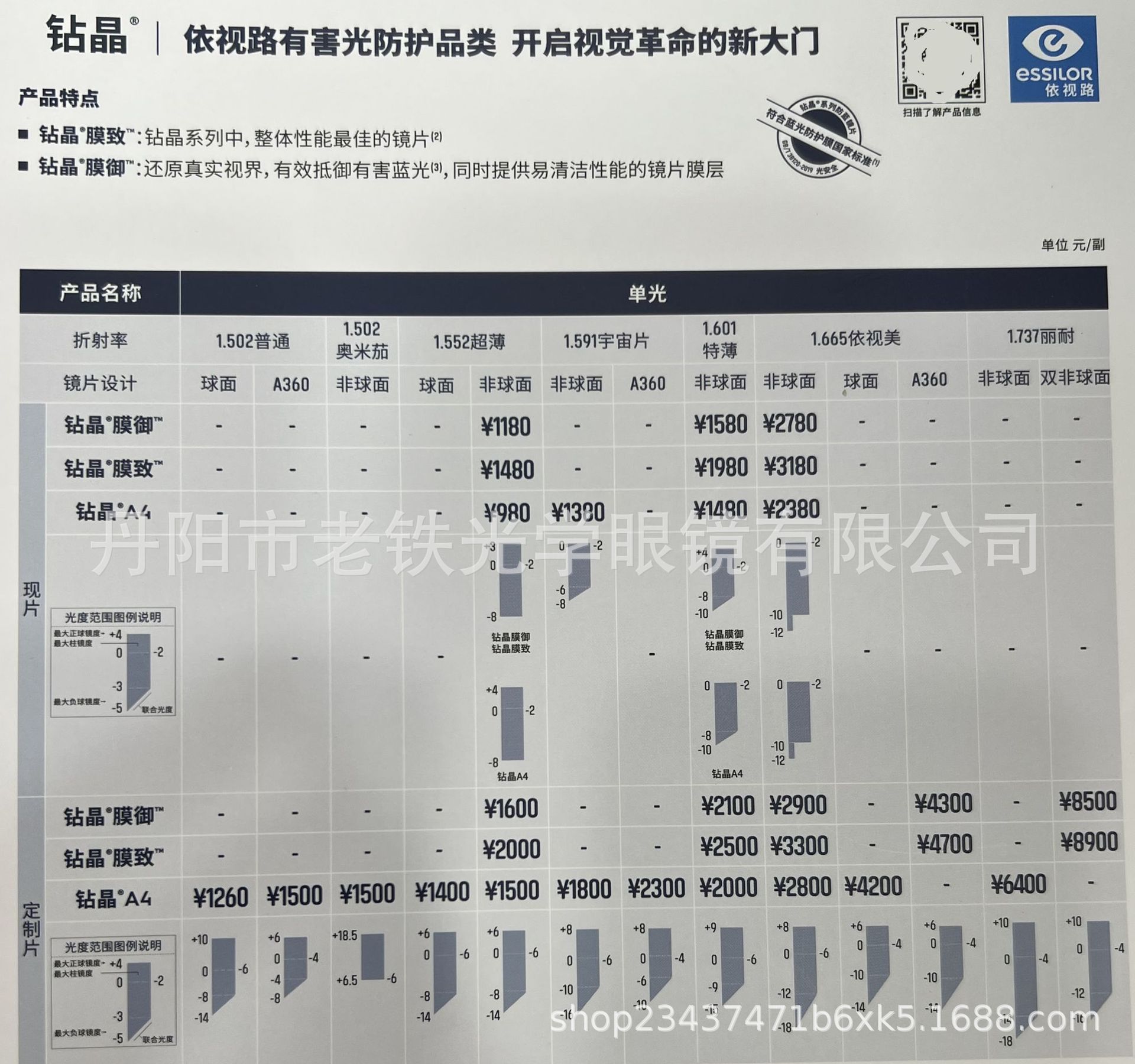 | 1.60钻晶A4 防蓝光 | ¥13500 | 9711片可售 |