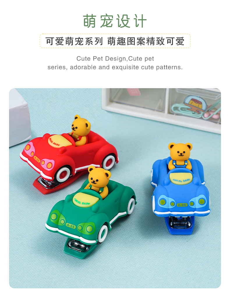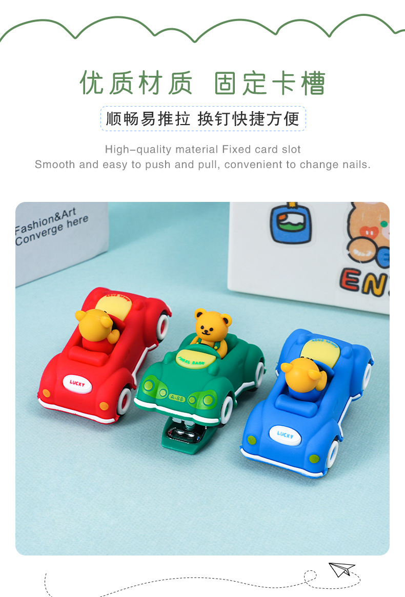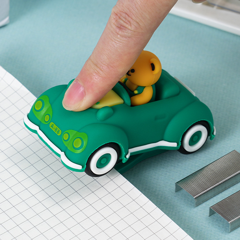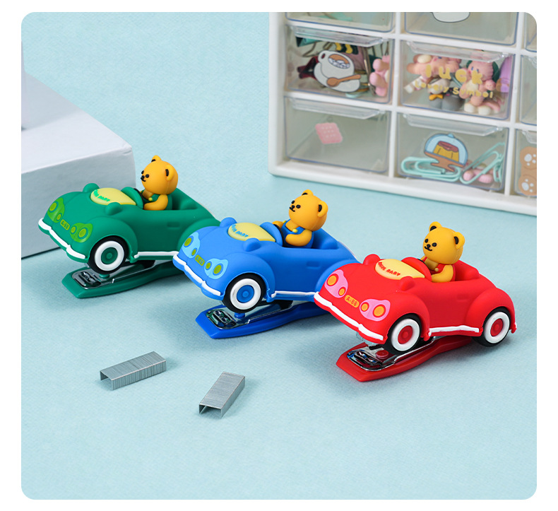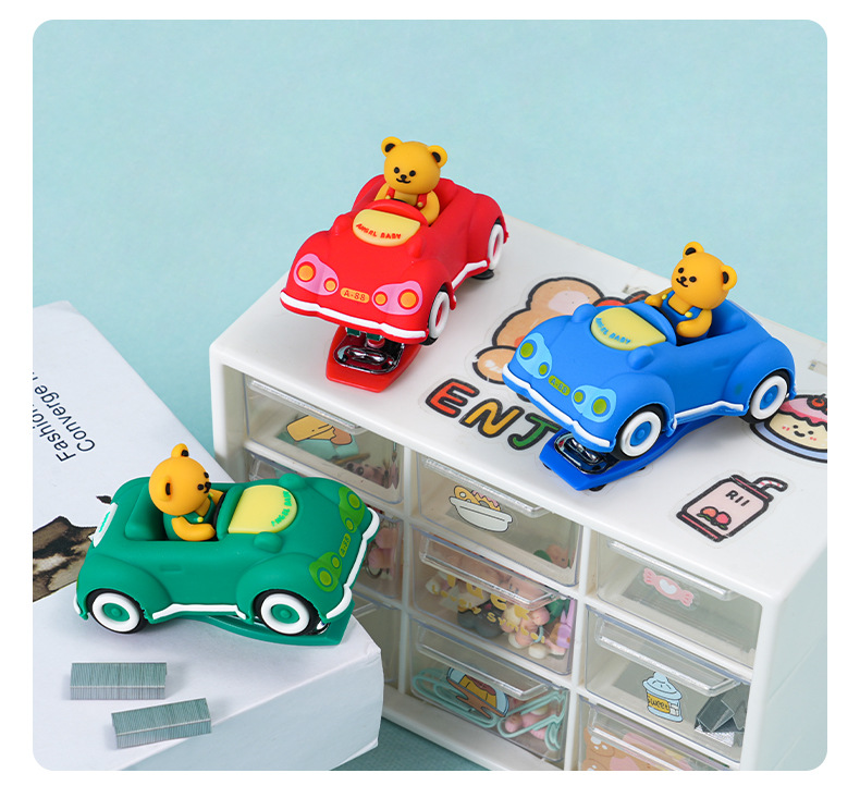 创意卡通小熊汽车造型订书机 迷你可爱办公学生用文具装订器批发