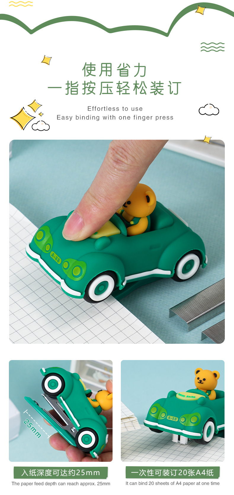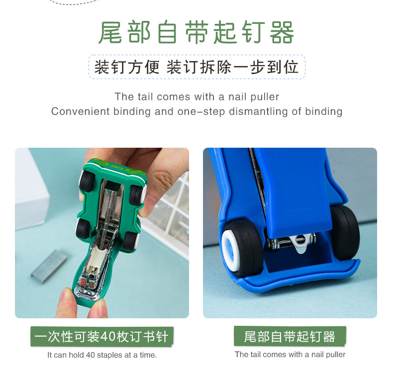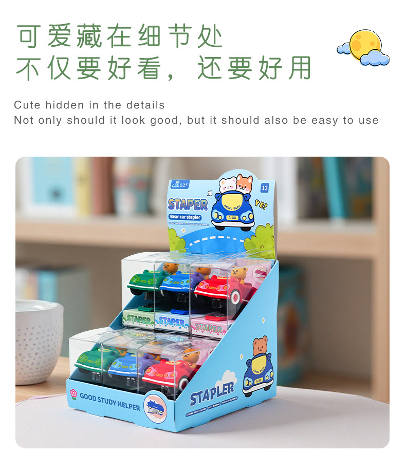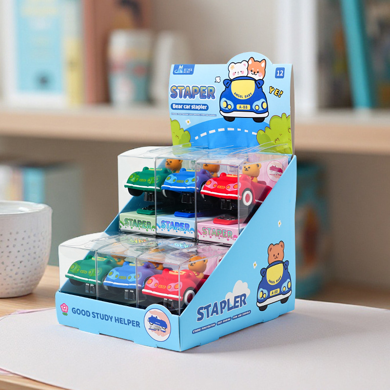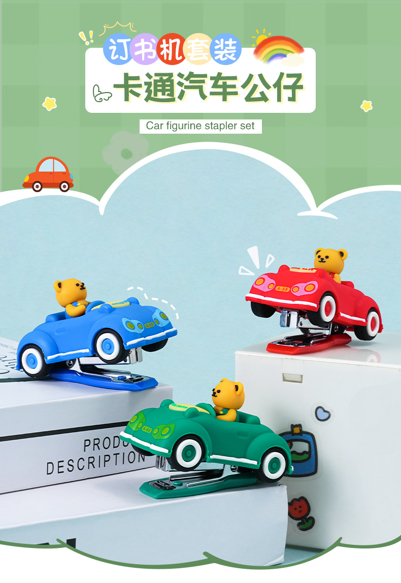 创意卡通小熊汽车造型订书机 迷你可爱办公学生用文具装订器批发
