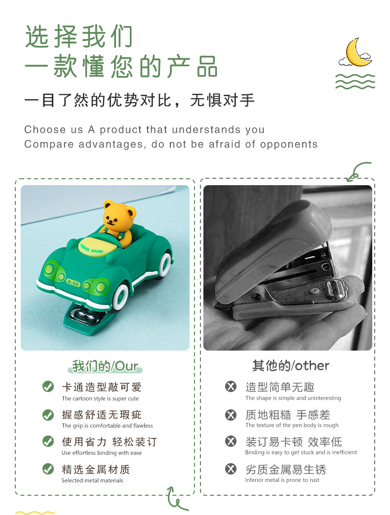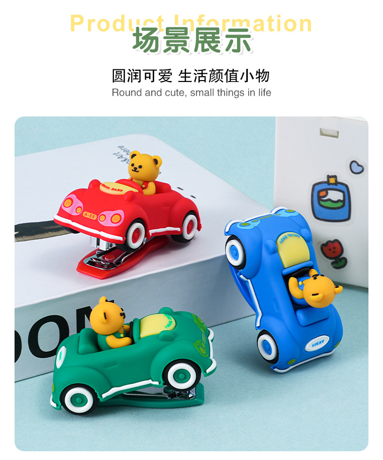 创意卡通小熊汽车造型订书机 迷你可爱办公学生用文具装订器批发 投诉