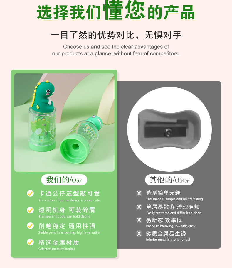 恐龙迷你卷笔刀创意可爱削笔器学生幼儿园学习文具奖品削笔刀批发 投诉