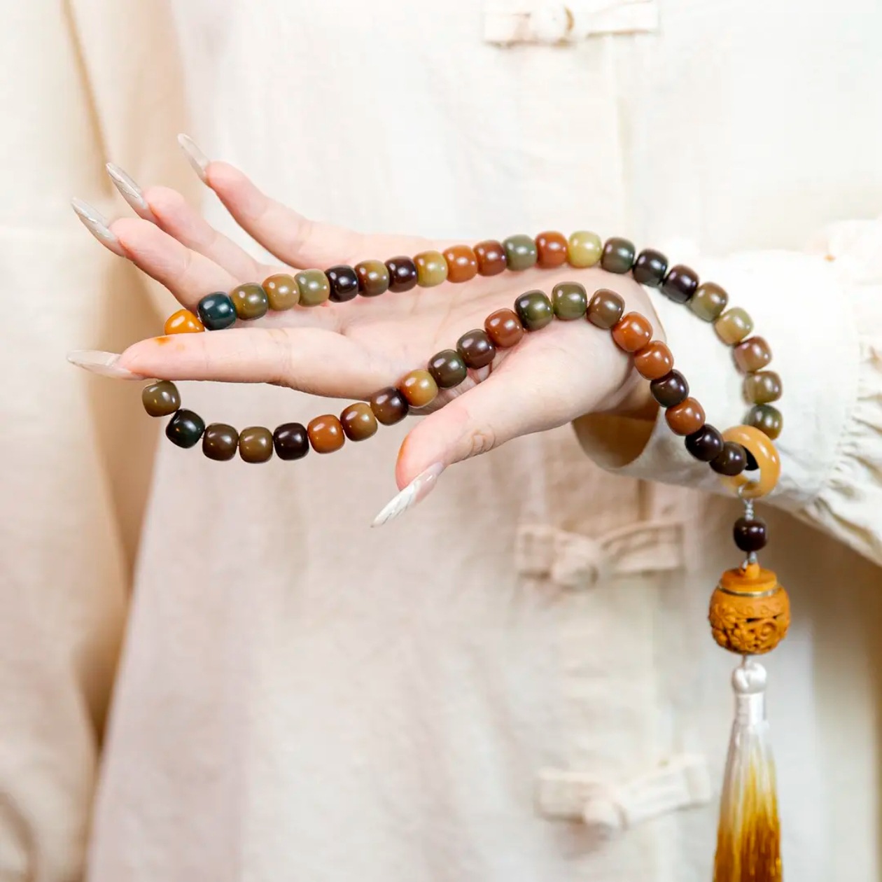 抖音热卖敦煌问天多宝菩提108颗手持 绿檀香囊男女佛珠直播供货 English | 投诉