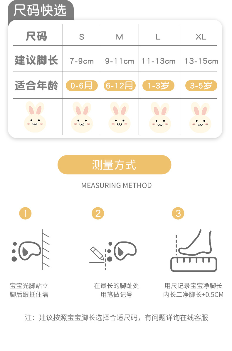 | S码 0-6月(建议脚长7-9cm) | ¥0 | 4984双可售 |